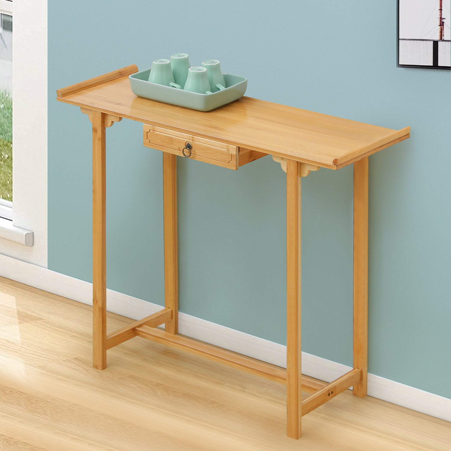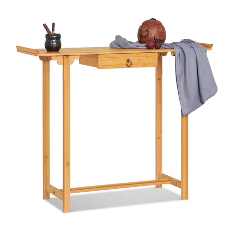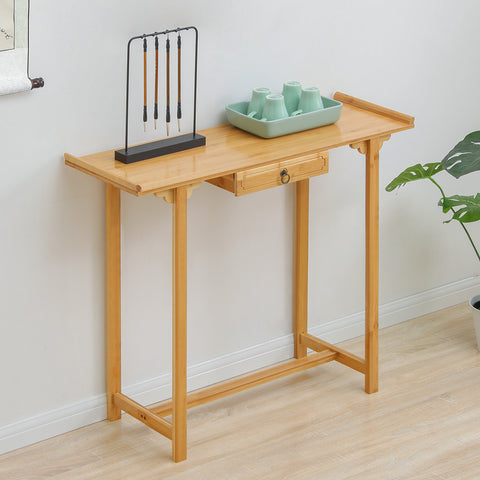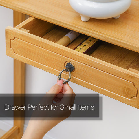 Nowhere to put your beloved decorations? Add a more traditional feel through this simple and versatile console table. Make with eco-friendly bamboo, this furniture is a perfect choice to add some natural elements to your entryway. With the drawer below, you can conveniently store your on-the-go items like keys or purses. Designed and crafted with care and attention to detail, the spacious bamboo plank tabletop provides a perfect place to display and store your favorite accessories, photos, and collectibles.