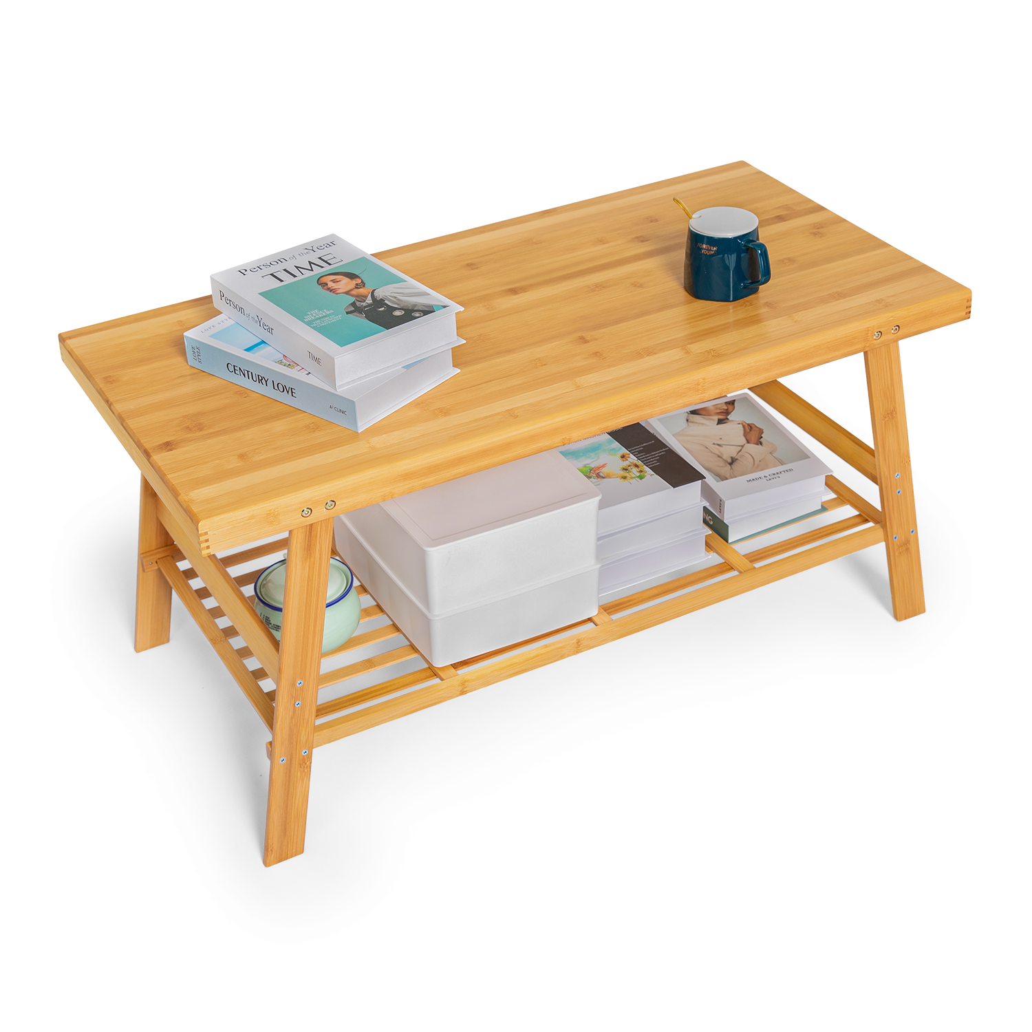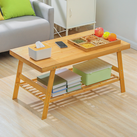 Liven up your living room look with a concise bamboo coffee table full of natural elements. Our environment-friendly bamboo provides a healthy lifestyle for you. The surface in the water-proof coating finished makes it durable and easy-clean, which means you don't need to worry about the food dirt dropping on it. Thicken table-board for reinforced design, provide a strong load ability and a large capacity. With a polished corner design, the table can protect your children and pets from injury. The layer below is also a handy place for your books or storage boxes, a smart design for your convenient life.