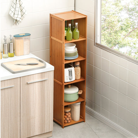 This versatile cupboard is designed to meet your storage needs in kitchen islands. This high quality bamboo cabinet takes your health problems into consideration, the material is totally environment friendly. This five-layer cabinet in a natural surface provides a large space for your cooking tools.