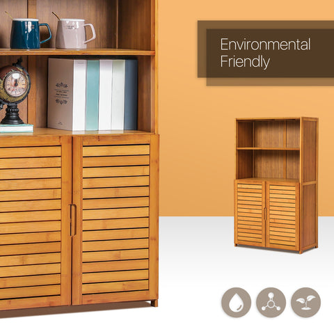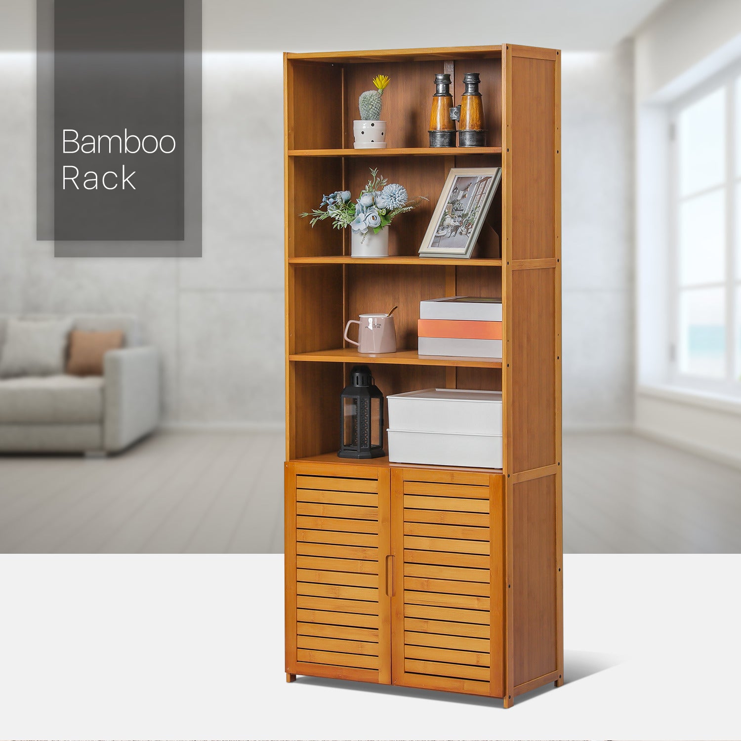 Add an extra platform and a new look to your living room. This modern 4 tiers bamboo brown standard bookcases in a natural surface provides an elegant appearance and concise design. This is not only a versatile shelf you can use in any places, but also a beautiful home decoration to bring relaxation to your living place through natural elements.