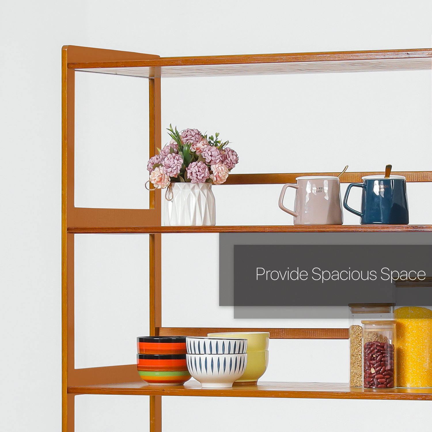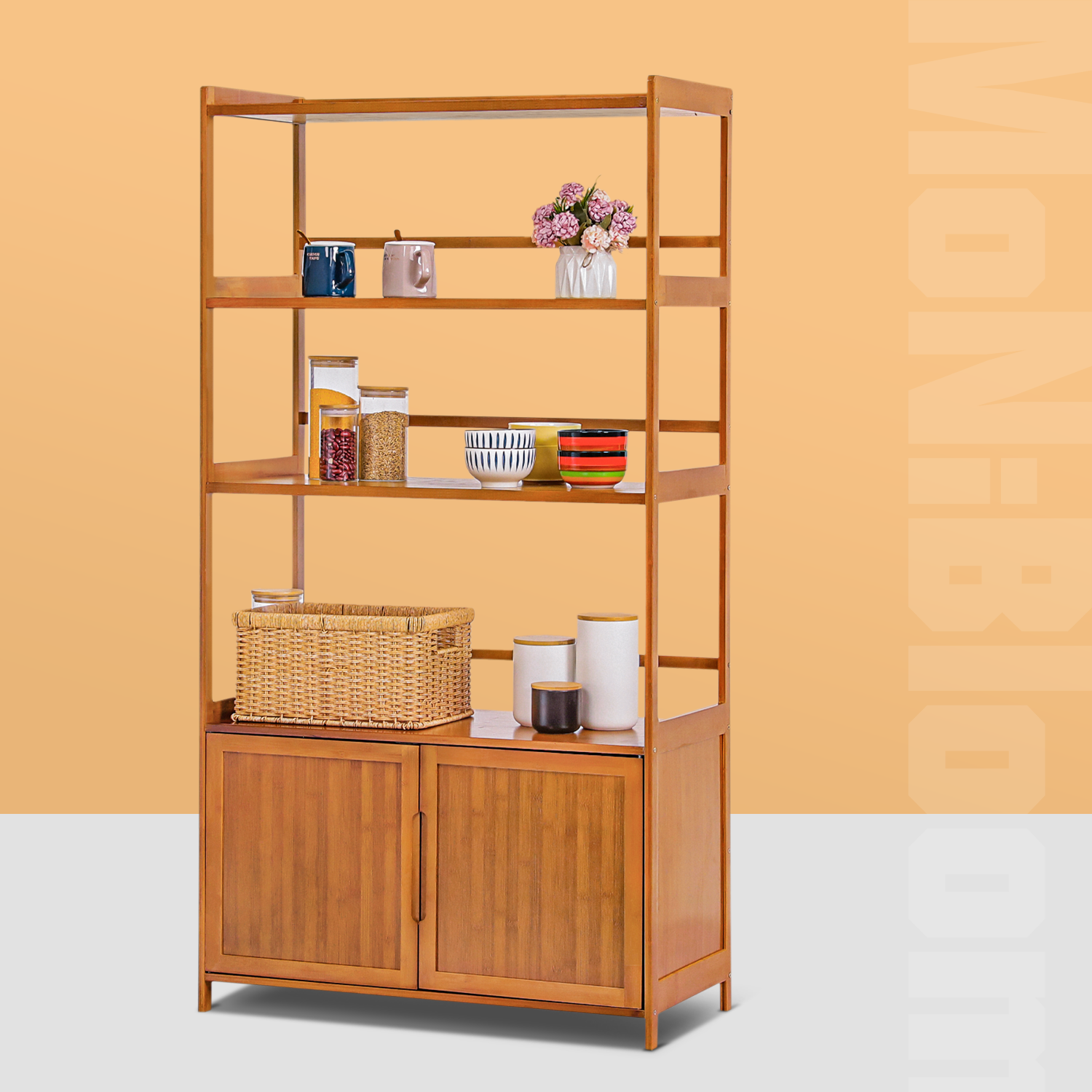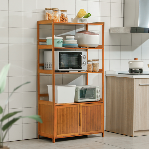 This versatile cupboard is designed to meet your storage needs in kitchen islands. This high quality bamboo cabinet takes your health problems into consideration, the material is totally environment friendly. This four-layer cupboard in brown coating surface provides a large space for your kitchen supplies.