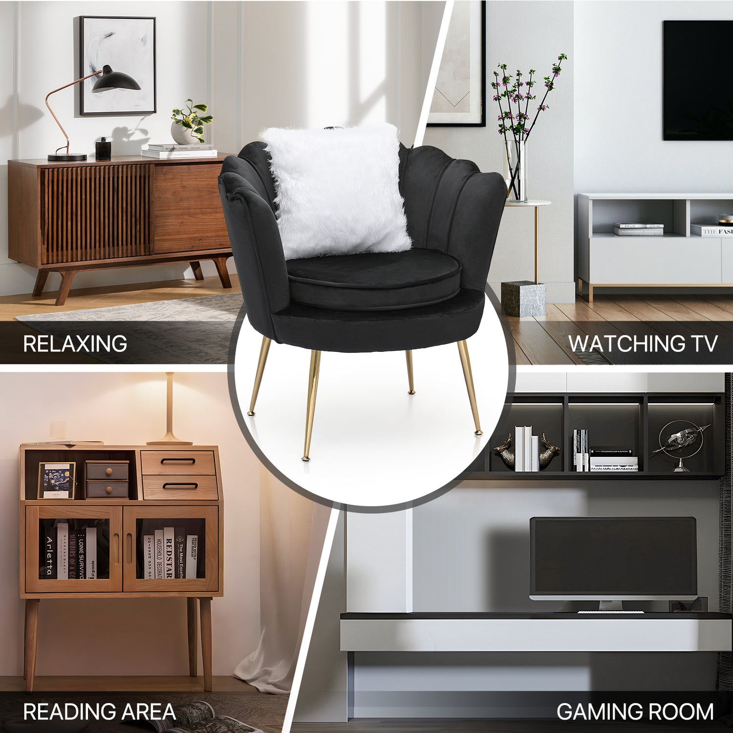 MoNiBloom Deluxe Modern Velvet Scalloped Back Accent Chair- designed for comfort and increased productivity while accomplishing your tasks at work or at home. Our accent chair follows human body mechanics principle design strictly. The curved backrest can better suit your back and give you a back rub, armrests help you to smooth weary muscles of neck and shoulder, scalloped style works well in delighting your house decor.