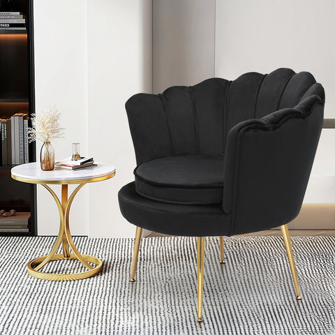 Upholstered Tufted Vanity Scalloped Back Velvet Accent Chair