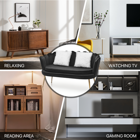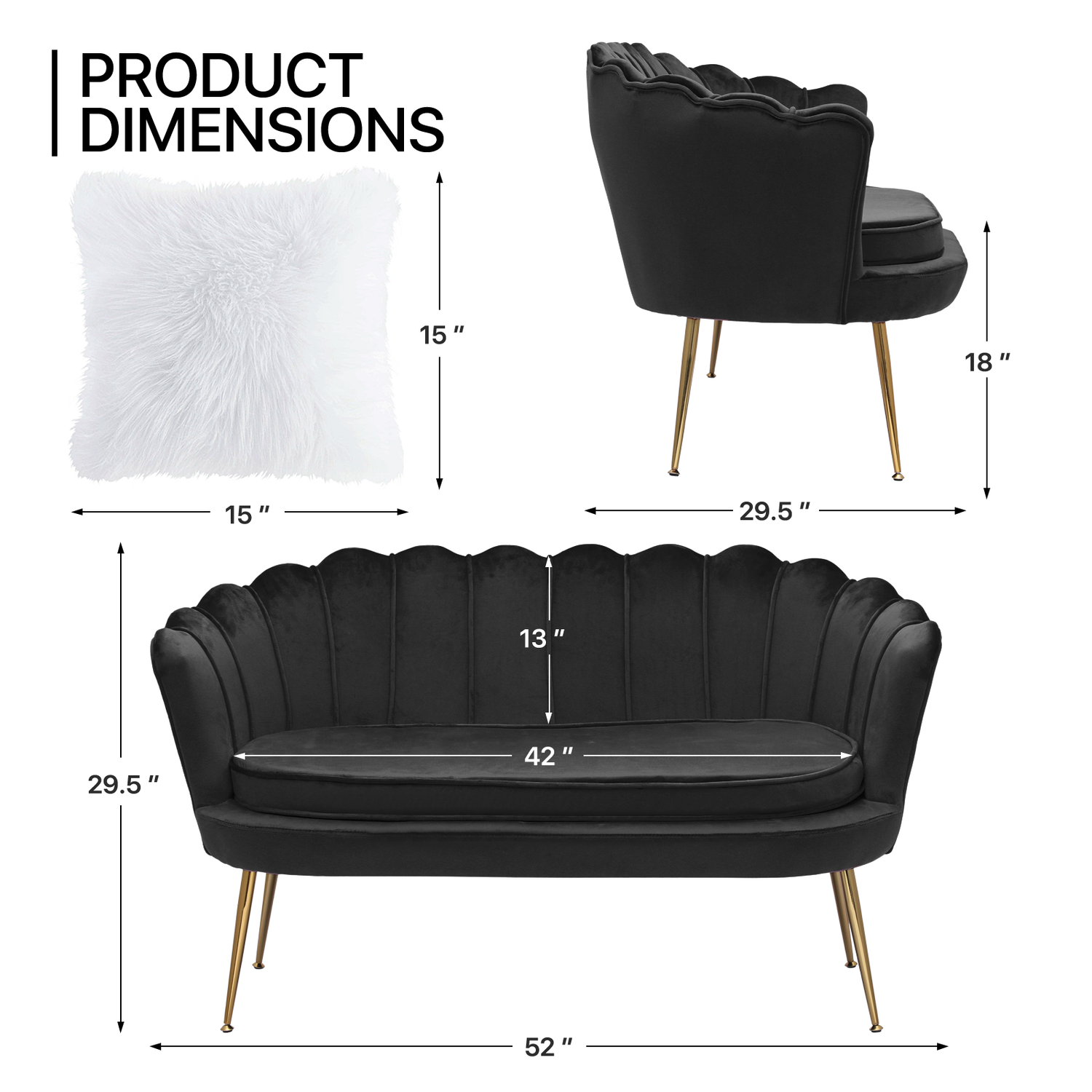 52" Velvet Tufted Upholstered Sofa Couch - Love Seat w/2 Pillows