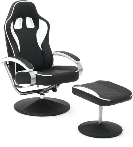 Indulge in ultimate comfort with our MoNiBloom Faux Leather Chair and Ottoman set. Designed with ergonomics in mind, it offers lockable positioning and a 360-degree swivel for maximum relaxation. The soft and durable leather is not only comfortable but also easy to maintain and clean. Treat yourself to unparalleled comfort with this modern recliner and ottoman set, allowing you to recline while resting your legs on the ottoman. Whether for home or office lounging, this chair seamlessly blends into any decor while providing a luxuriously comfortable seating experience.