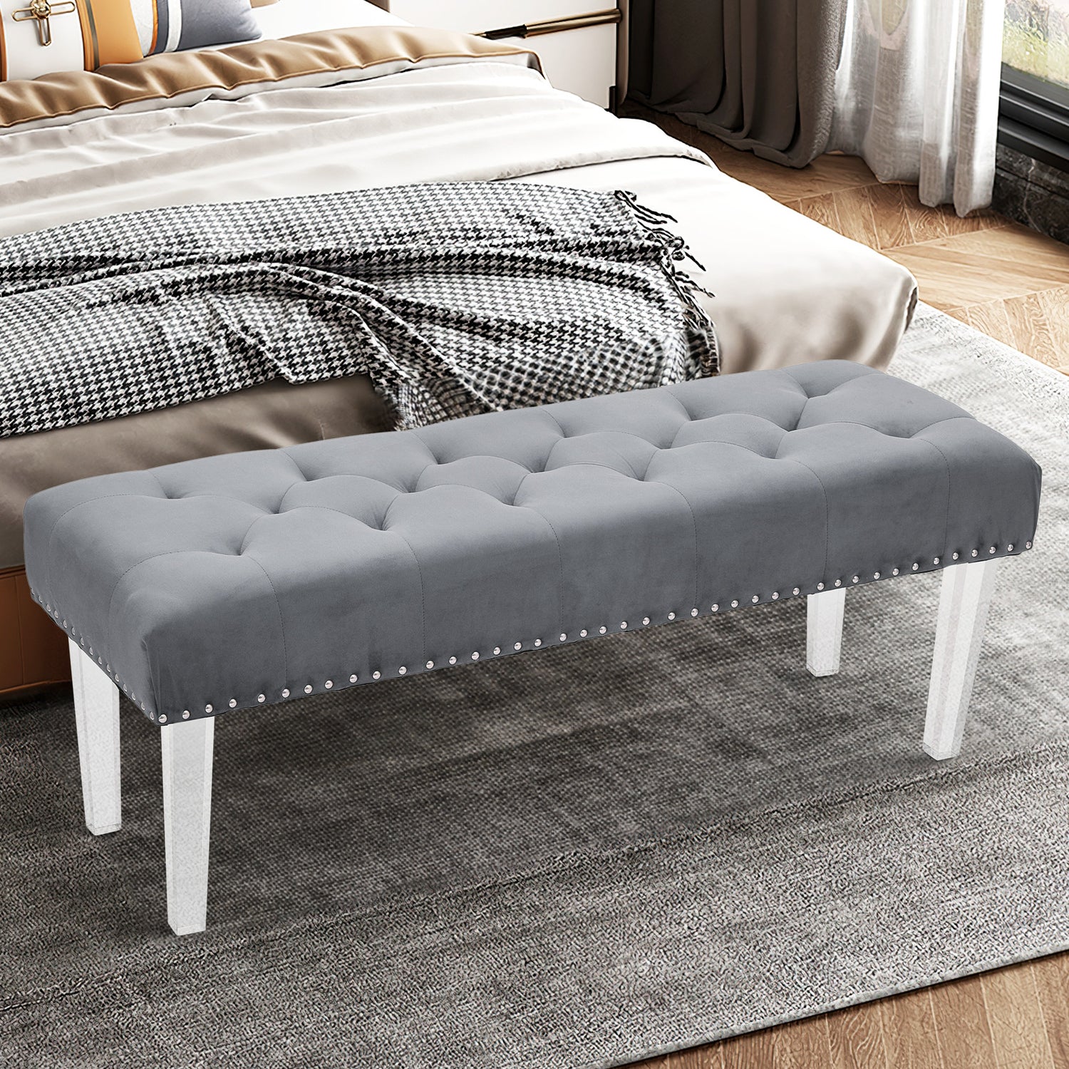 47" Tufted Ottoman Seat Mid-Century Rectangle Footstool Bench - Acrylic Foot