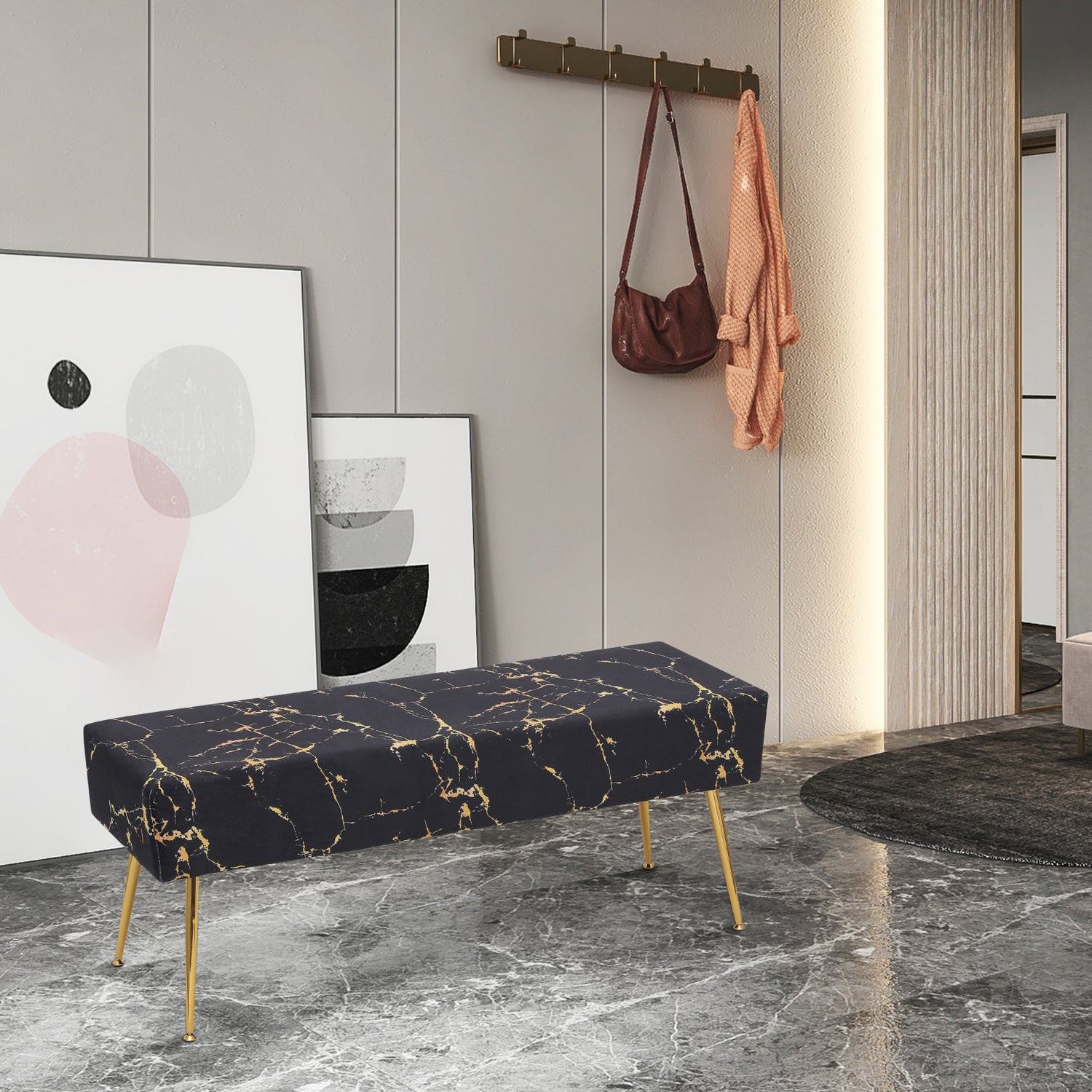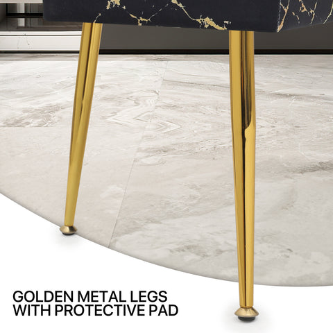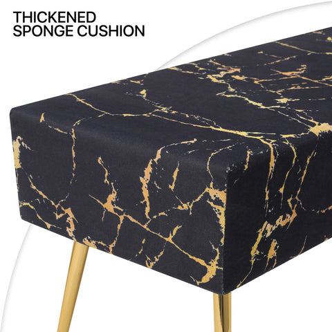 Velvet Tufted Upholstered Ottoman Bench Footstool Marbling Microfiber Seat