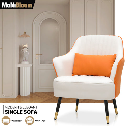 This single sofa chair is designed for comfort and style with its armrest and cushioned seating. Its solid wood frame provides durability and stability, while the golden metal legs add a touch of elegance and sophistication.