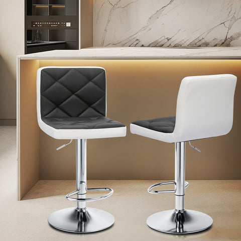 Set of 2 Leather Bar Stool Modern Adjustable Swivel Kitchen Counter Height Chair