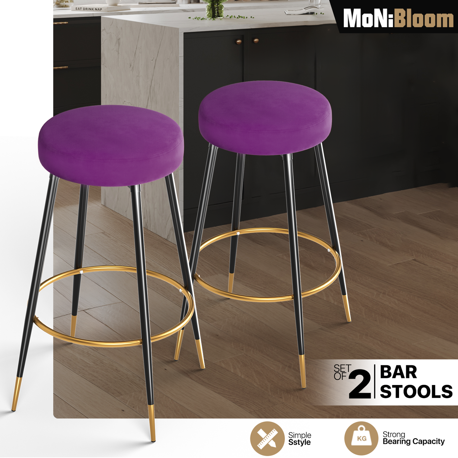 Set of 2 Velvet Counter Bar Stools Upholstered Round Backless Seat - 29.5"H