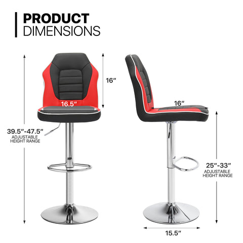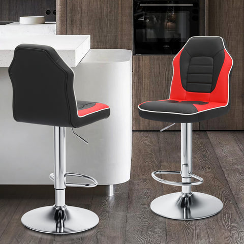 Set of 2 Modern Bar Stools Adjustable Swivel Leather Seat Gaming Chair Style