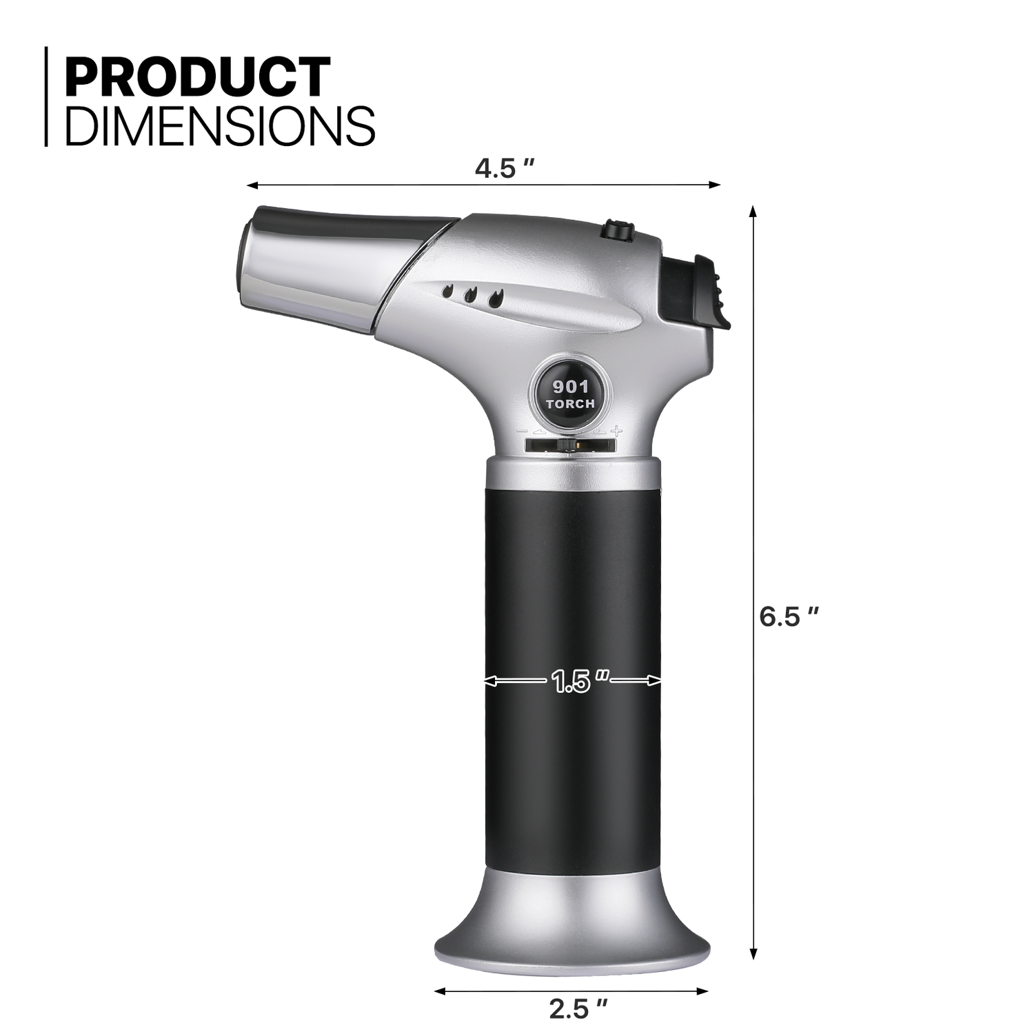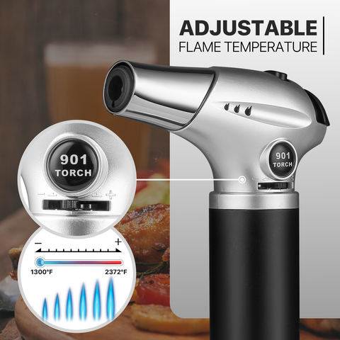 Butane Torch Lighter - Adjustable Flame Length+Safe Lock - w/Continuous Flame Mode