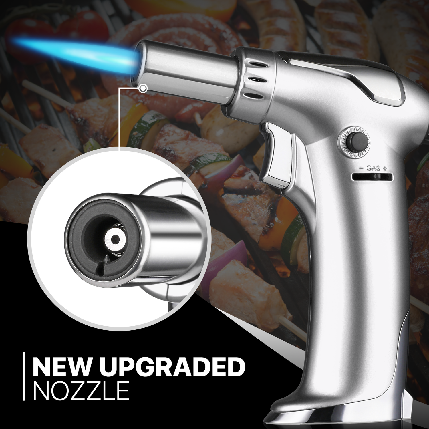 This butane-powered torch delivers a robust and precise flame, reaching up to high temperatures necessary for gourmet cooking, baking, and other heat-intensive applications. It's an indispensable tool for culinary enthusiasts needing focused, high-heat flame.
