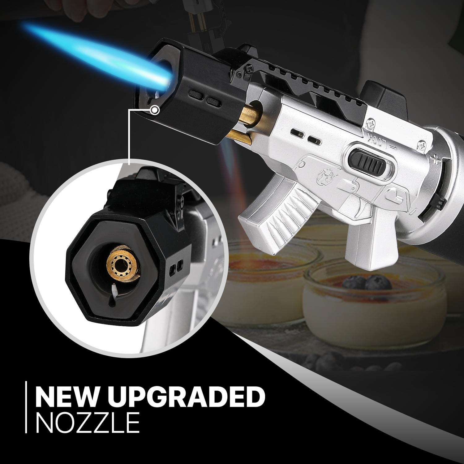 Gift the perfect tool with our novel butane torch, designed for enthusiasts. Constructed from durable aluminum alloy, it features a safety lock for secure operation. Simple to use, just unlock, ignite, and adjust the flame for diverse tasks like caramelizing, BBQ, and baking. Suitable for a wide range of indoor and outdoor applications, it quickly refills with any butane brand, making it a versatile choice for culinary and outdoor enthusiasts alike.