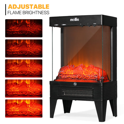 Freestanding Electric Fireplace - 1500W Space Heater - Adjustable Flame Brightness