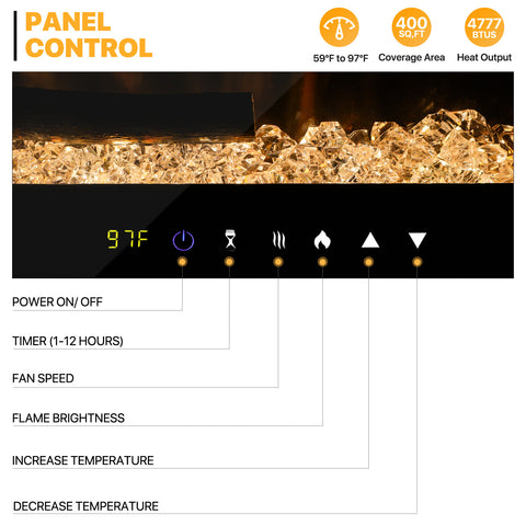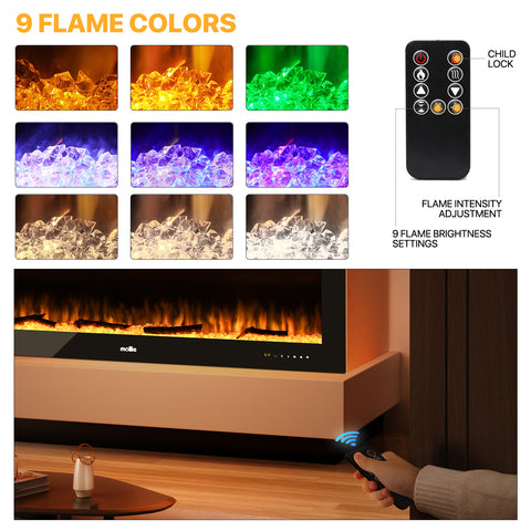 36" Wall Mounted Electric Fireplace - 1400W Space Heater - 8 Flame Colors 4 Brightness Level - with Remote
