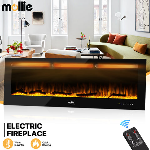 60" Wall Mounted Electric Fireplace - 1400W Space Heater - 8 Flame Colors 4 Brightness Level - with Remote