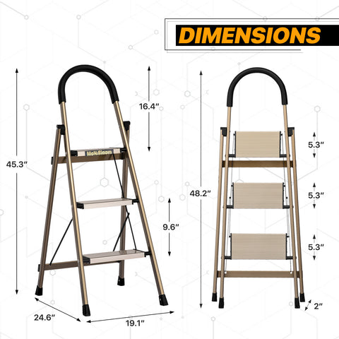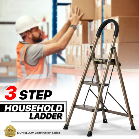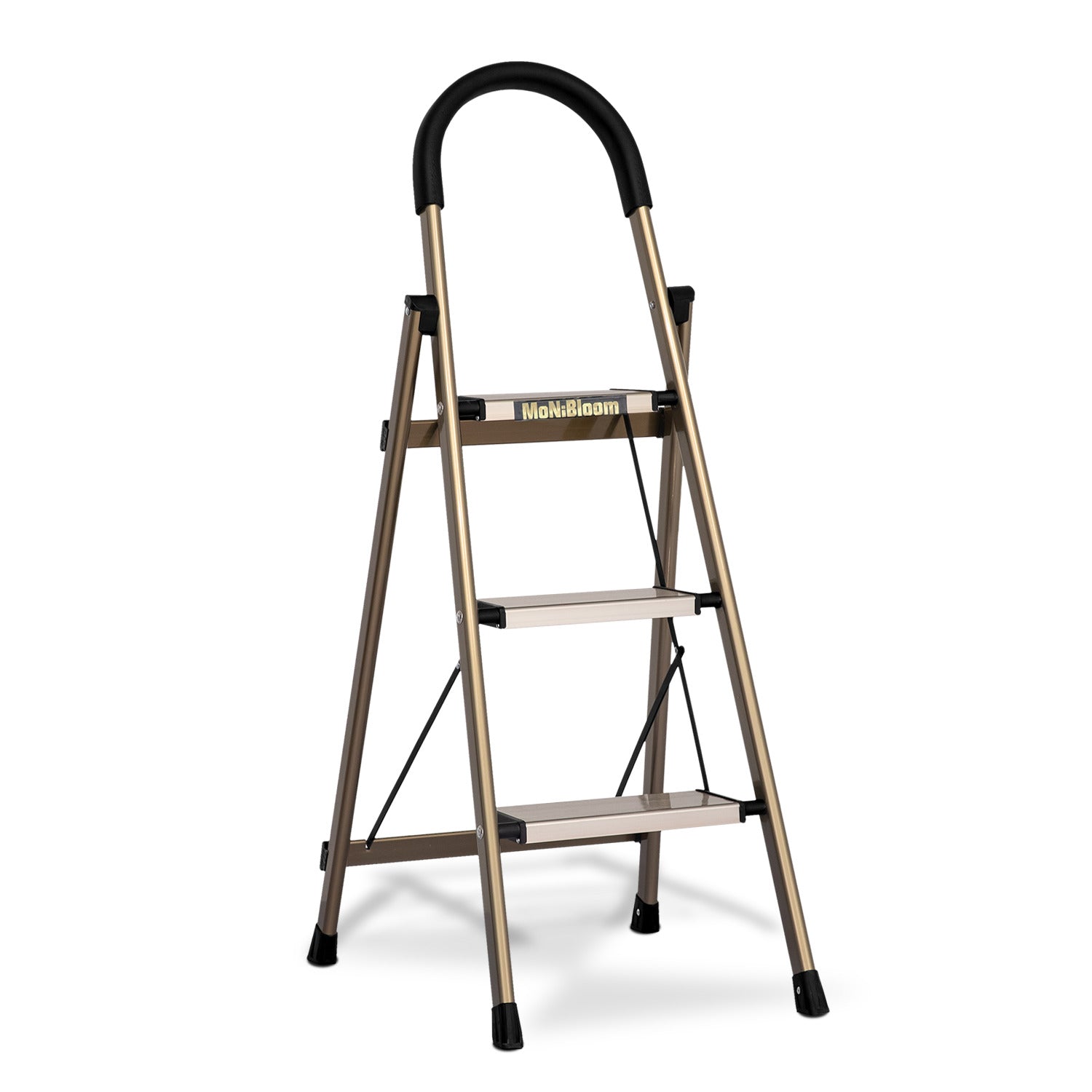 U-Shaped Padded Handle Folding Step Ladder - 3 Steps 3.78 ft/45.3", Gold