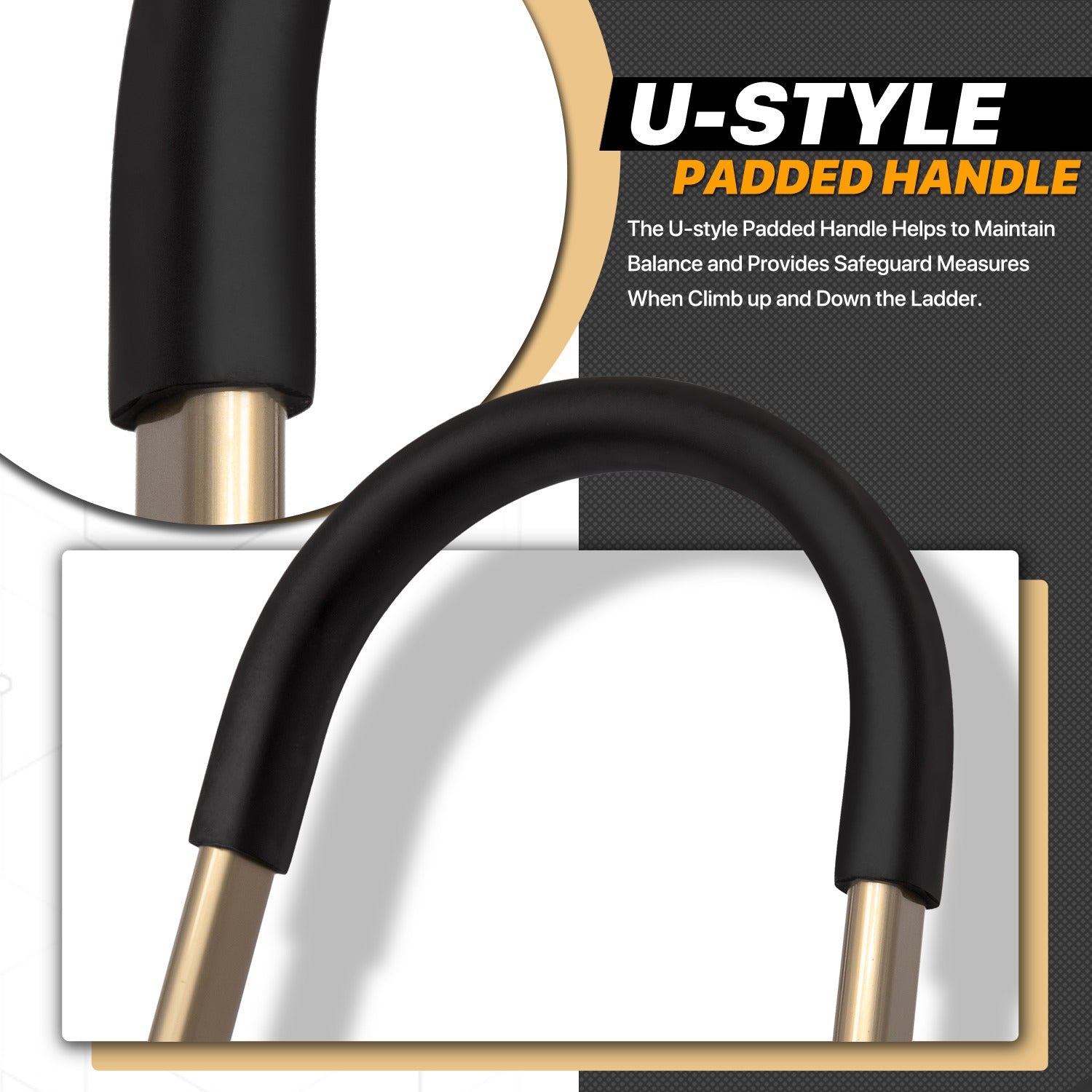 - Padded Handle - U-style padded handle not only maintains balance but also provides with safeguard measure when you climb up and down the ladder.