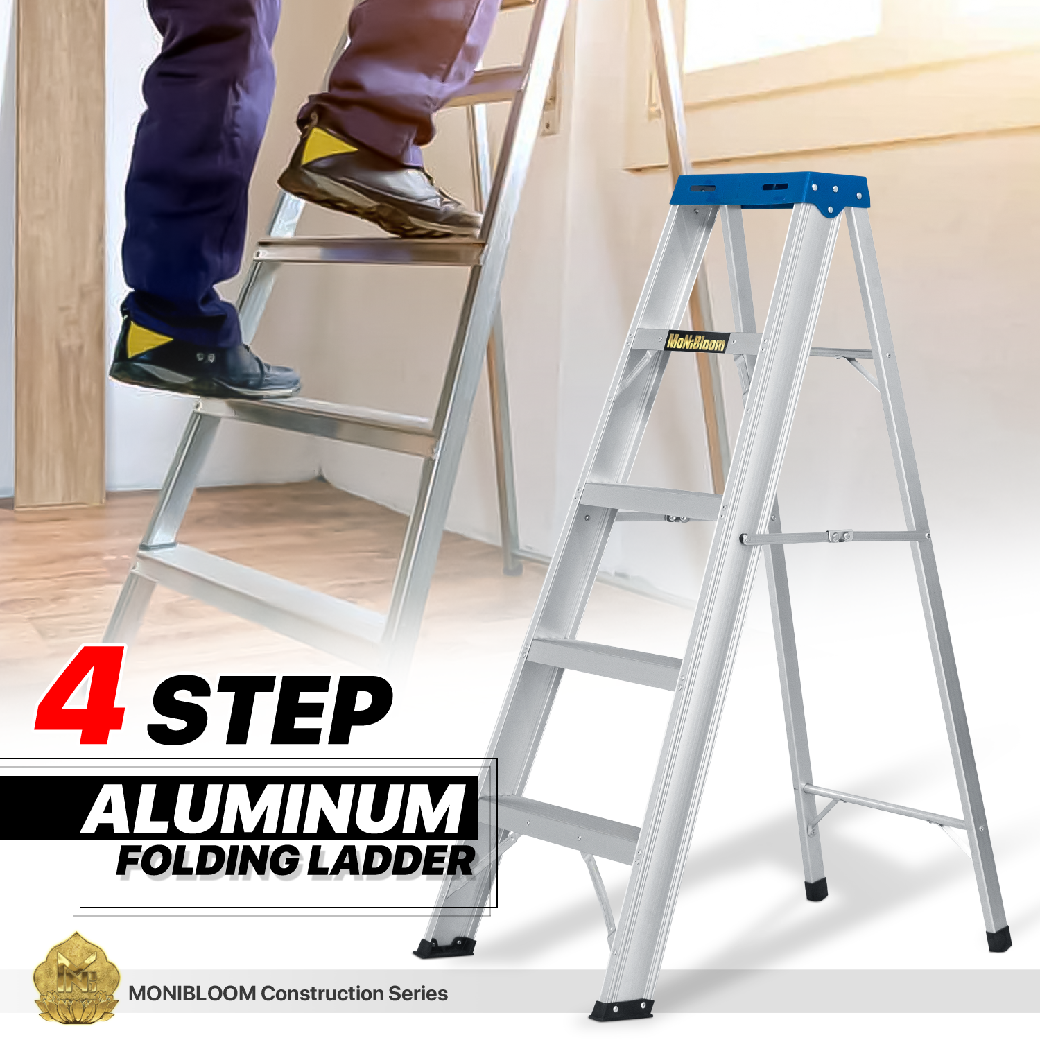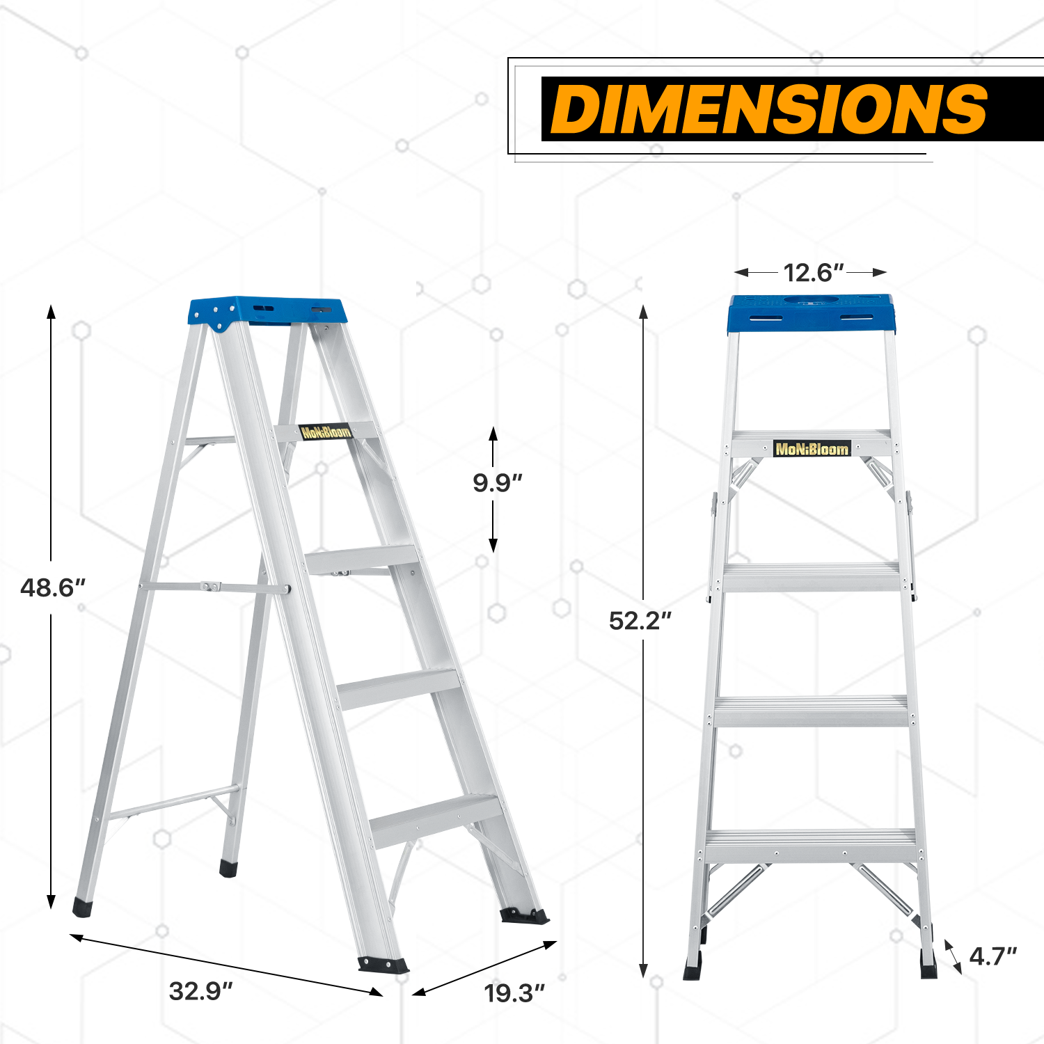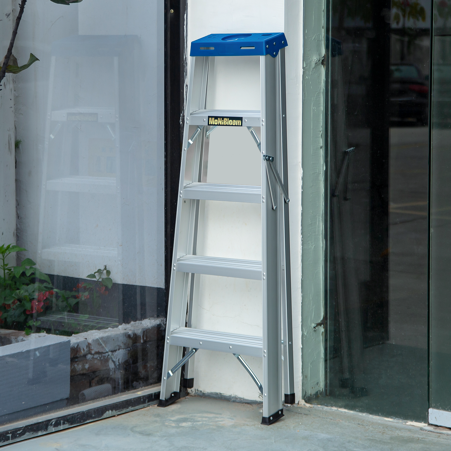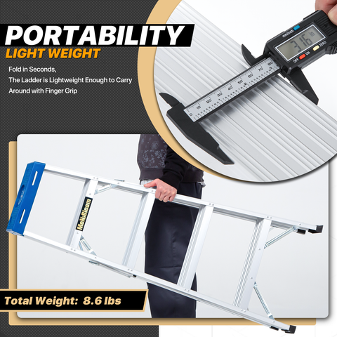 - Set-up Instantly - Fold in seconds, built-in external pinch-proof spreader. Benefit from high-strength aluminum alloy material, the ladder is lightweight enough to carry around.