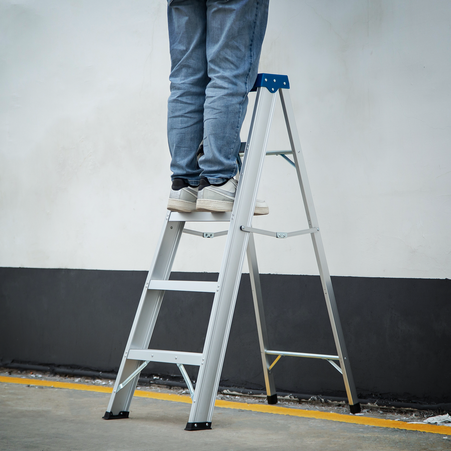 Available in many different sizes and configurations, a ladder is a must-have item for homeowners, handypeople, and construction professionals alike. If you need extra height for outdoors working our stepladders could be your smart choice. Due to the corrosion-resistant aluminum alloy structure, this ladder is lightweight and portable. Reinforce side slats on the top and bottom make the ladder have a stronger load ability. The top handle helps to maintain balance and saves trips up and down your ladder by keeping frequently-used tools at your fingertips with the built-in tool caddy. For safety measures, A-shaped frames that self-support on four legs, also with the anti-slip base cap, allows you to balance the ladder on a staircase or other uneven surface.