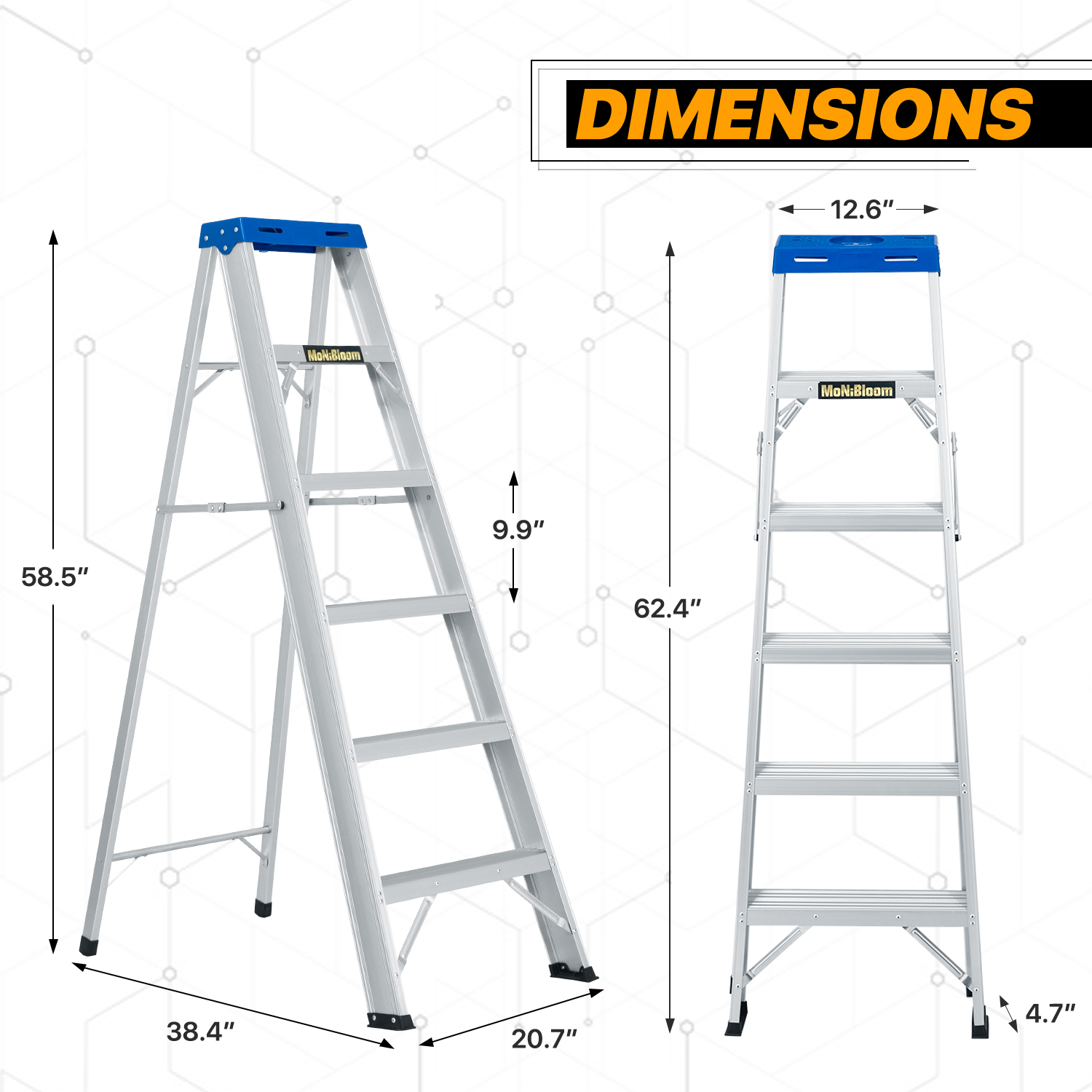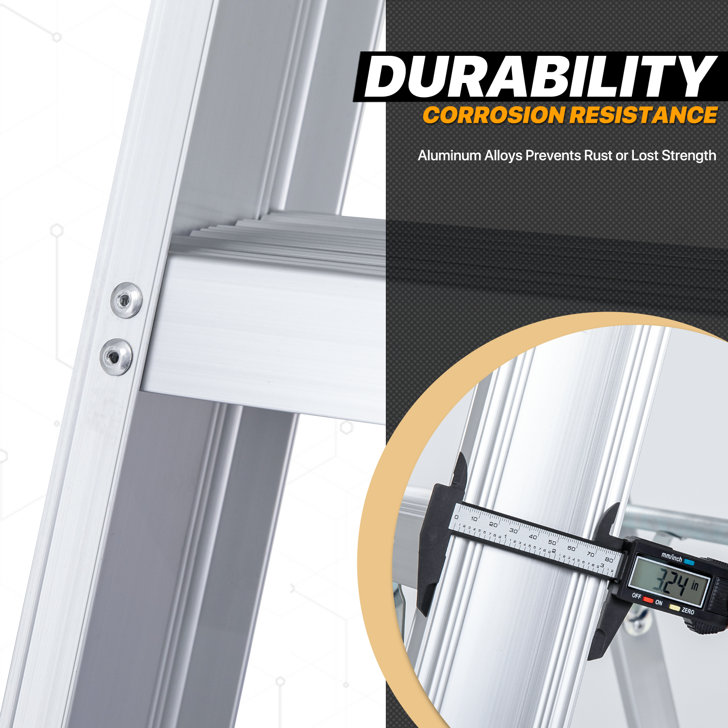 - Set-up Instantly - Fold in seconds, built-in external pinch-proof spreader. Benefit from high-strength aluminum alloy material, the ladder is lightweight enough to carry around.