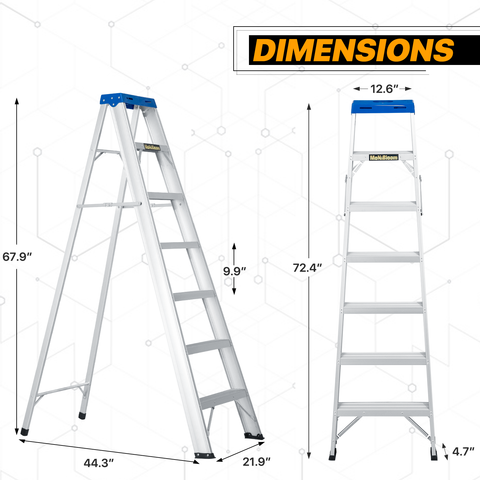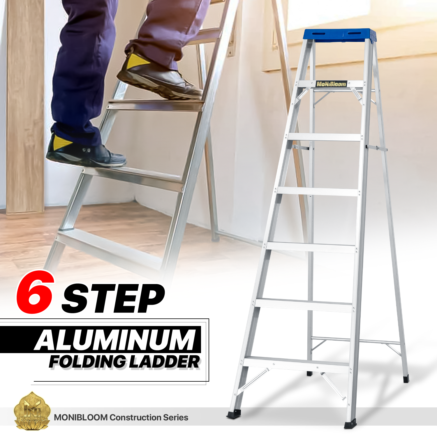 - Set-up Instantly - Fold in seconds, built-in external pinch-proof spreader. Benefit from high-strength aluminum alloy material, the ladder is lightweight enough to carry around.