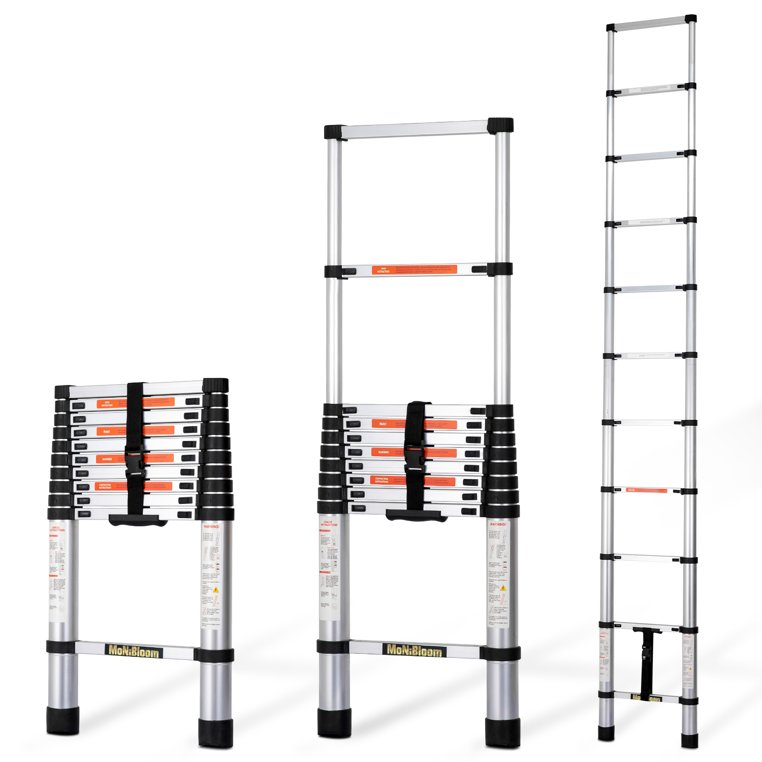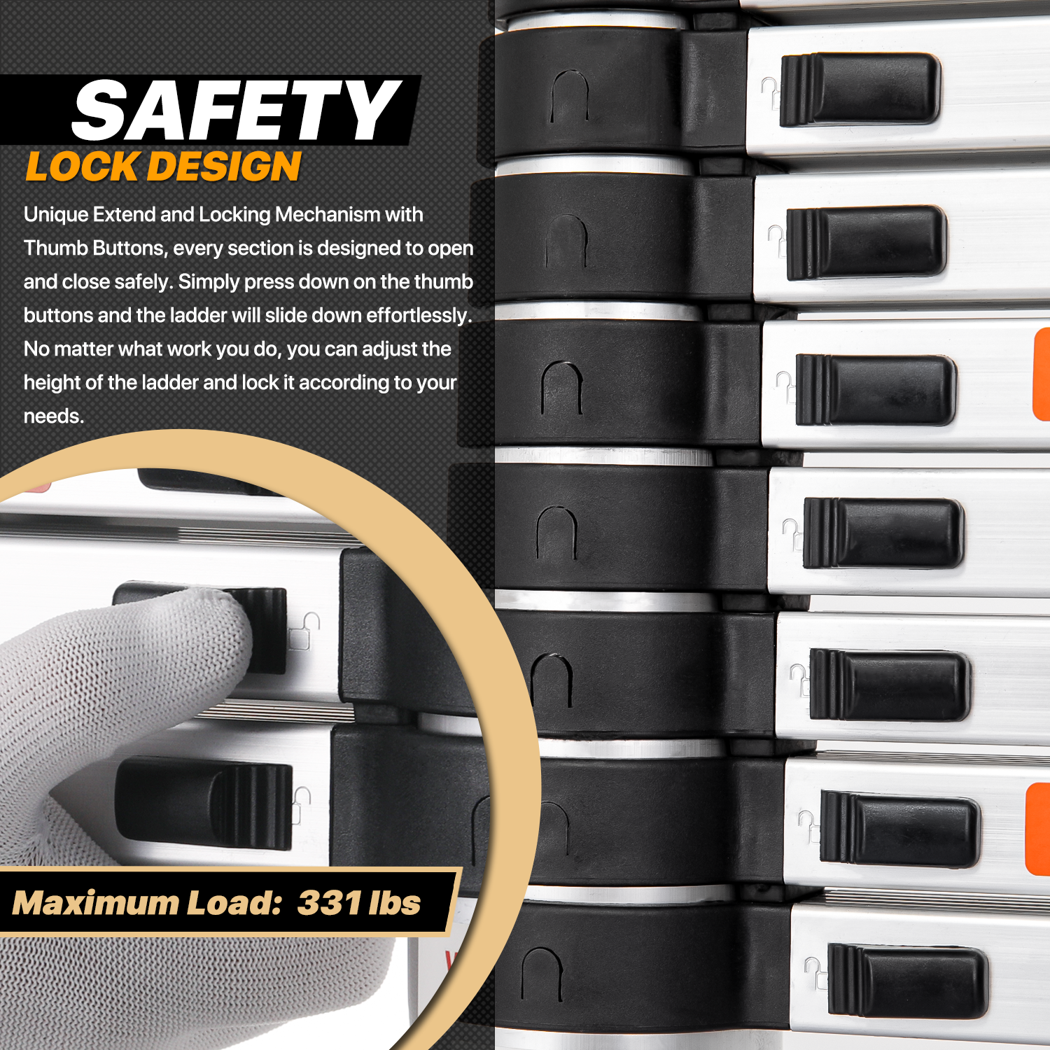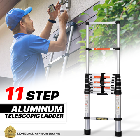 Available in many different sizes and configurations, a reliable ladder is a necessity for construction professionals. If you need extra height for outdoors working and get tired of bringing your bulky, unwieldy ladder around, our extension ladder could be your smart choice. This telescoping ladder is an extension ladder that can easily "collapse" when not in use for easier storage, also you can adjust the height of the ladder quickly and conveniently. Due to the corrosion-resistant aluminum alloy structure, this ladder is lightweight and portable. Benefitting from the collection strap and grip handle, the ladder is convenient to carry around. For safety measures, we get a curved anti-slip base cap to avoid waggling, which also allows you to balance the ladder on the uneven surface.
