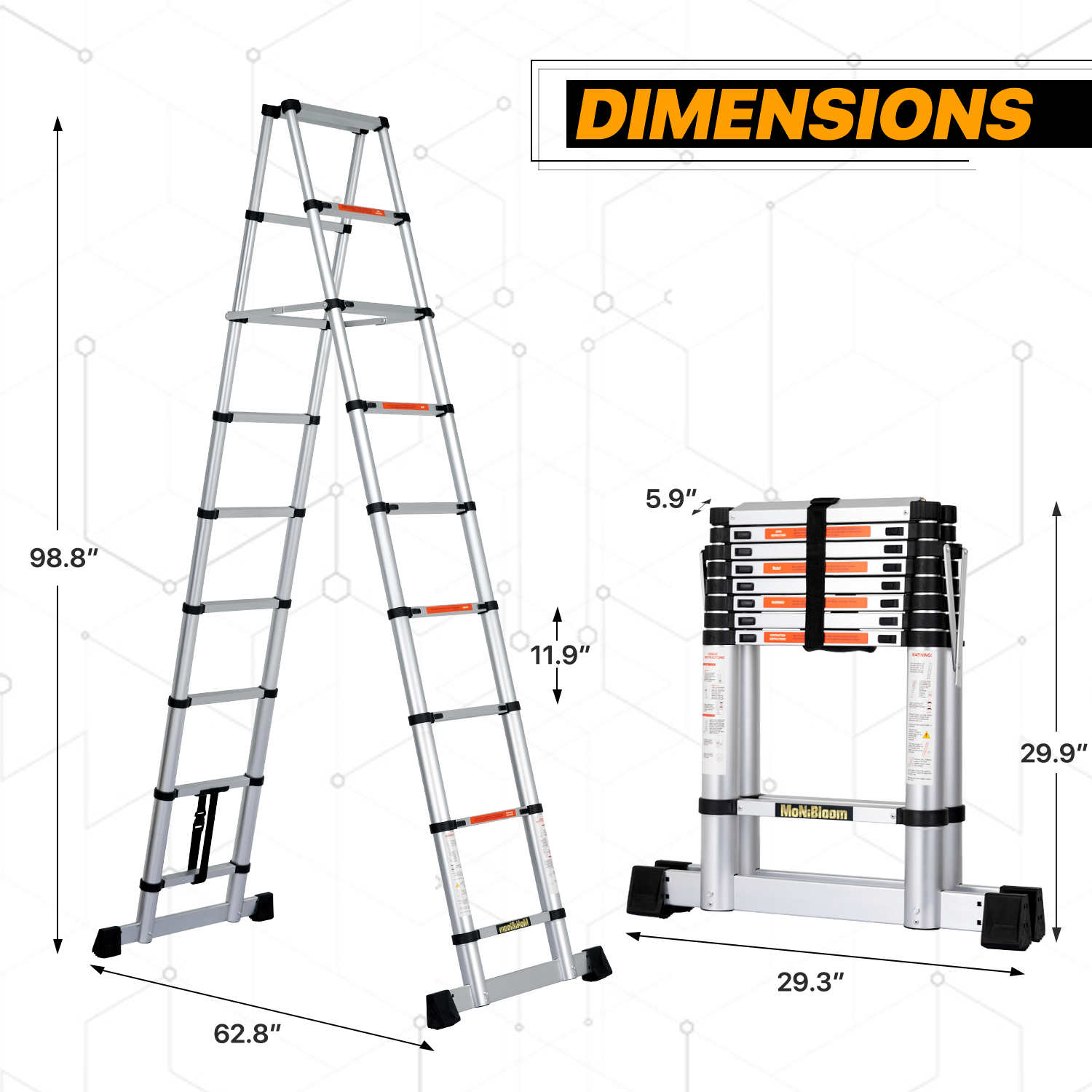- Set-up Instantly - Fold in seconds, benefit from high-strength aluminum alloy material, the ladder is lightweight enough to carry around.