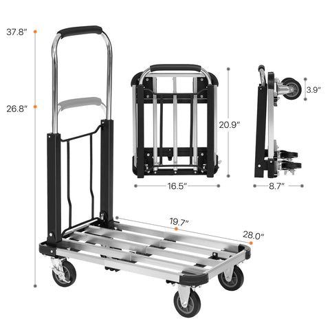 - Swivel Wheels for More Flexible Operation - Easily control the hand trolly with 360° rotating wheels, as well as navigating tight corners and spaces.