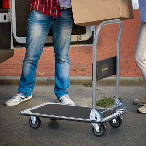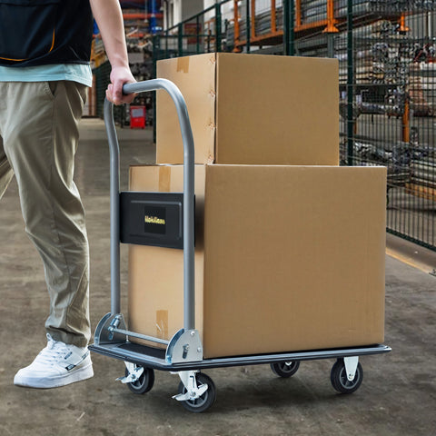 Made of a high carbon iron frame, this platform hand truck is sturdy and strong, bearing large loading 331 lb capacity. They come in great use for where carrying heavy items manually over longer distances would be unsafe or strenuous on your body. You'll notice that the platform cart has a simple design so you and your team can use it straight away with minimal training. You can expect most versions to follow the design of a flat platform with four wheels and a fixed handle which is used to either push or pull the platform and the load it's carrying. The easy-to-use hand tolly is foldable so that you can store them with ease when not in use to avoid any increased chances of hazards or having them take up unnecessary floor space. Transporting heavy or uneven material manually can be a challenging task which is where having one of these can help as they are there to make the transportation process easy and safer for you, your team, and anyone else moving items on your site. The wheels on it allow for a smooth transportations process as long as there are not any obstructions in the surrounding area so you can move items around your floor space with ease.