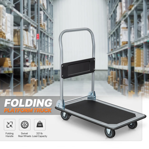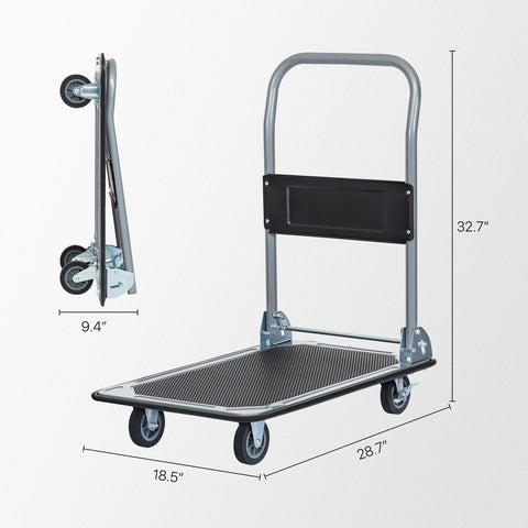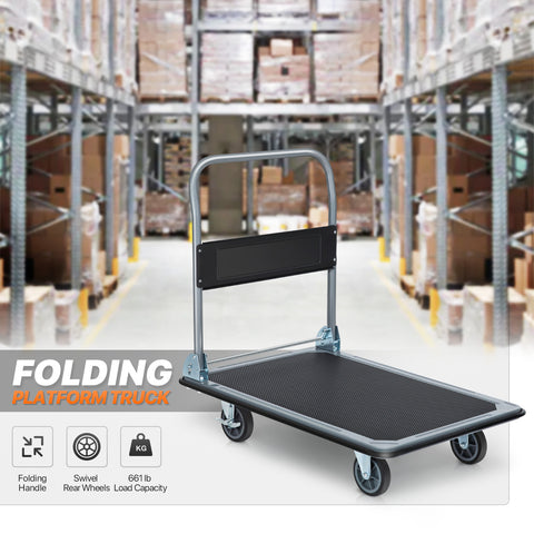 4-Wheeled Foling Platform Truck w/Swivel Caster - Black/Grey