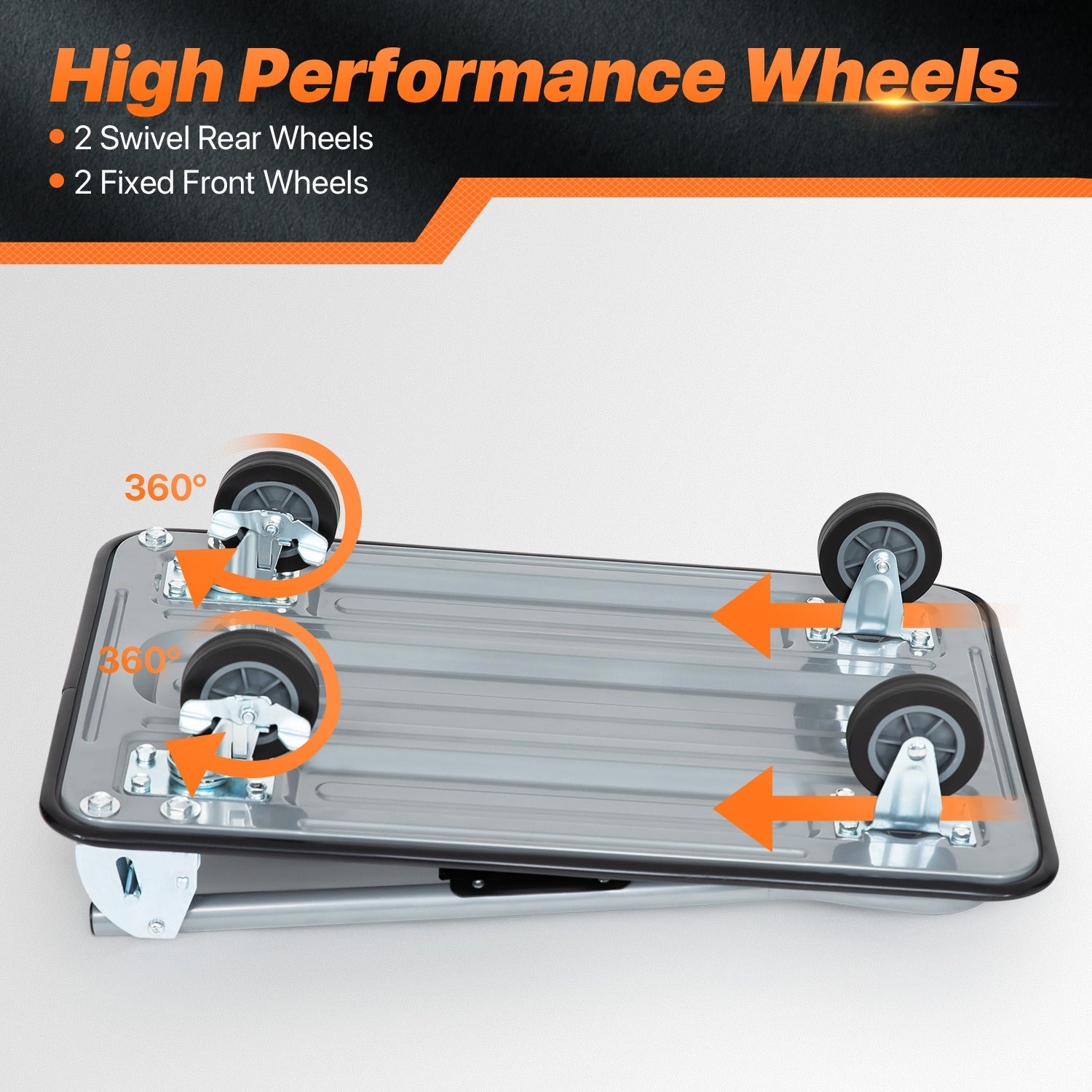 - Swivel Wheels for More Flexible Operation - Easily control the hand trolly with 4 wheels(2 Rear 360° wheels, with brake), as well as navigating tight corners and spaces.