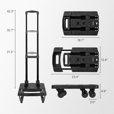 - Large Capacity - Telescopic chassis can increase the entire area of the chassis and provide more cargo space, This collapsible rolling trolley can support load weight to 441 lbs.