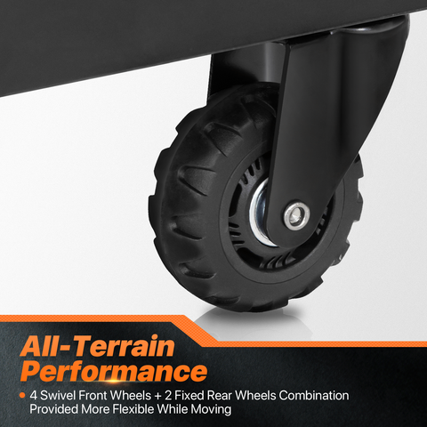 - All-Terrain Performance - Go off-road in all seasons with performance 6 Tank wheels that keep on rolling over rocks, sand, snow and rough terrain. Four spinner wheels make it easy to pull it alongside you or push it in front of you with minimal effort.