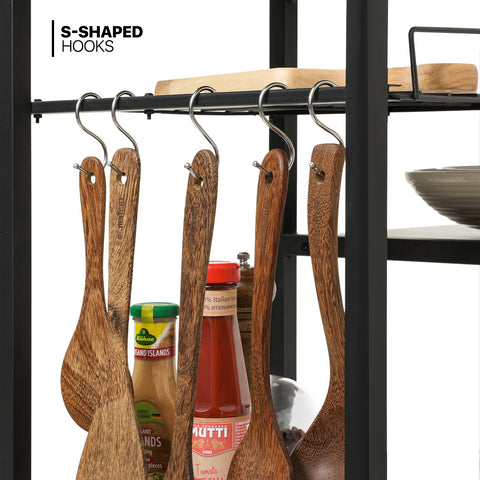 - Sturdy Construction - This kitchen utility cart's shelf is constructed of high-quality MDF wood board and black iron frame for better stability and extended durability. X-bracing on the back prevents this kitchen cart island from shaking or waggling.