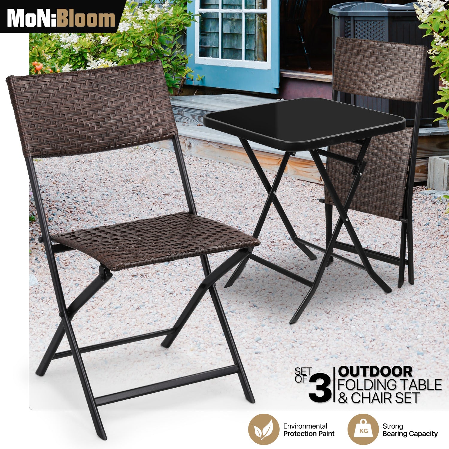 This garden bistro set from MoNiBloom is naturally moisture-resistant, hardy and long-lasting. It can also fold away easily after use, meaning you can save space on your patio or balcony. Bistro tables are trendy, creating other spaces within your home that can be utilized for a wide variety of purposes.