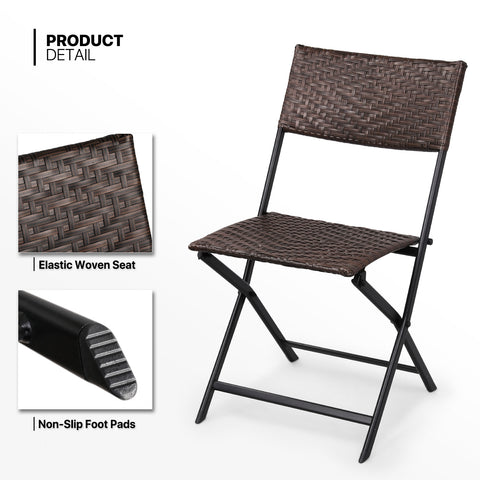 Patio Bistro Set, Tempered Glass Table & 2 Rattan Wicker Chairs