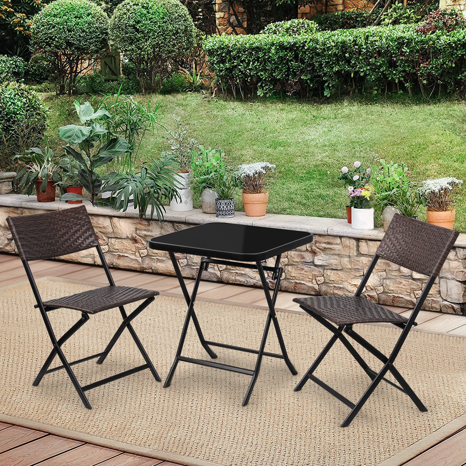 Set of 2 Foldable Patio Rattan Wicker Chair