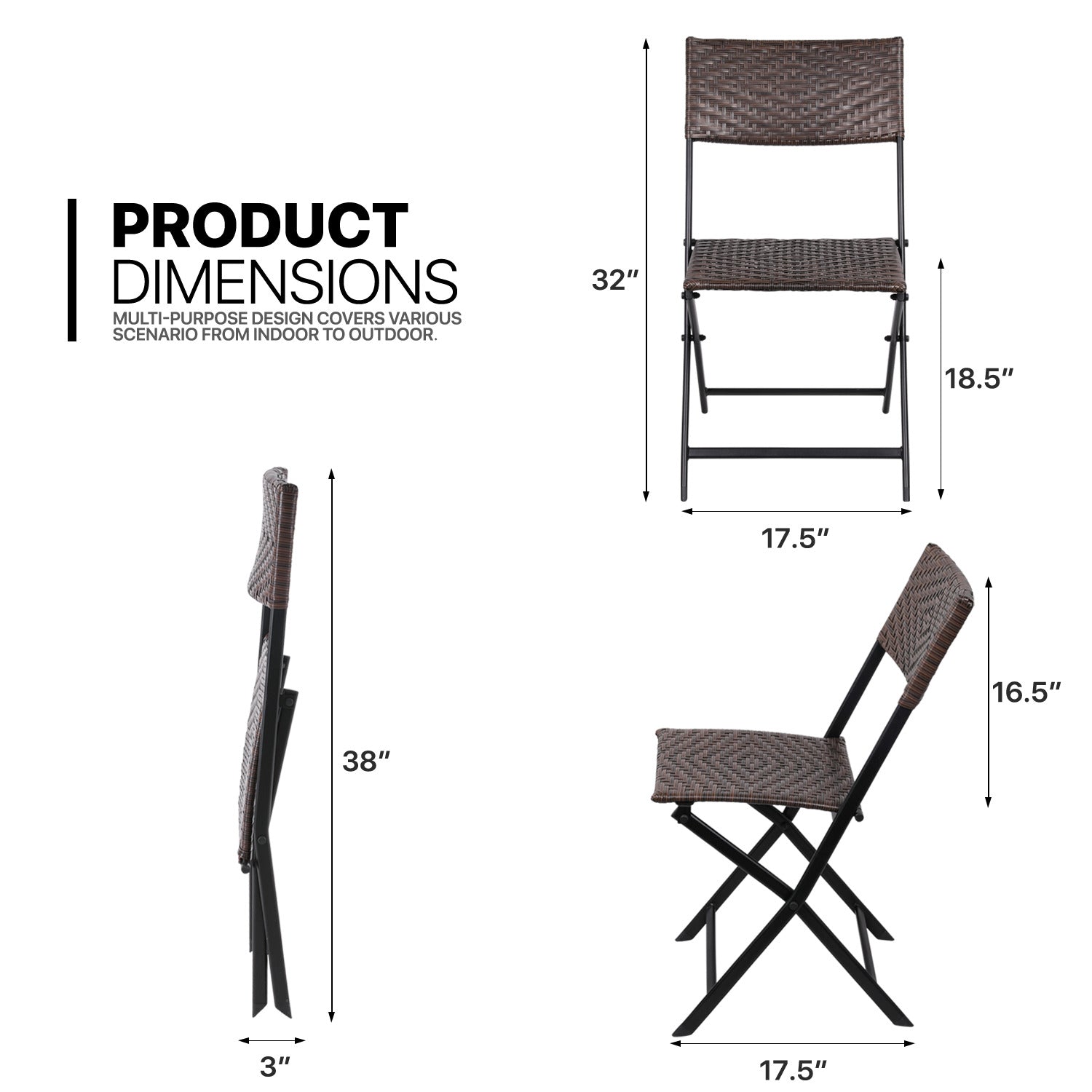 | Folding size | (L)17.5" (W)3.0" (H)38.5" |
