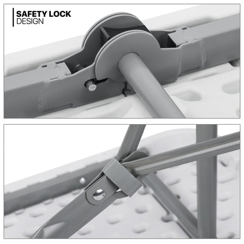 - Steady and Heavy Duty - The security locks help to completely fix the tabletop. The enhanced frame provides more of support and load capacity. The table legs with rubber cap not only protect the floor but also prevent slipping.