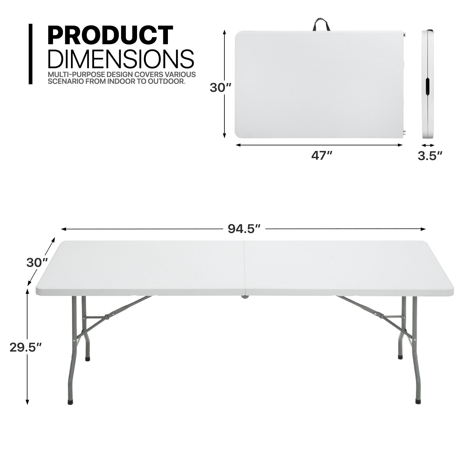 - Wide Application - A folding table is great for almost any occasion, whether indoor or outdoor. It can be used as a picnic table, dining table, barbecue side table, commercial table, patio table or bring it with you on a camping trip, host a picnic party in your backyard, etc.