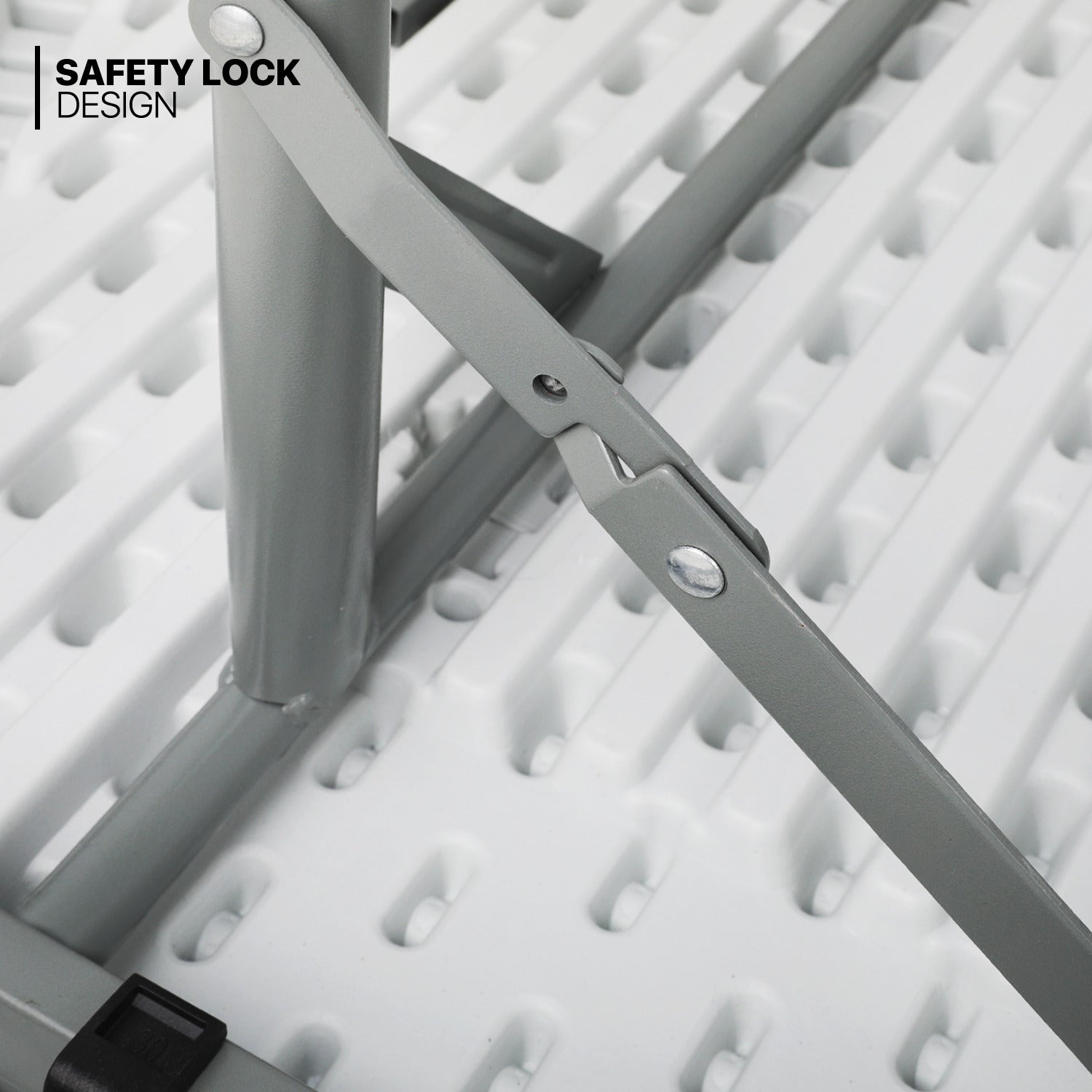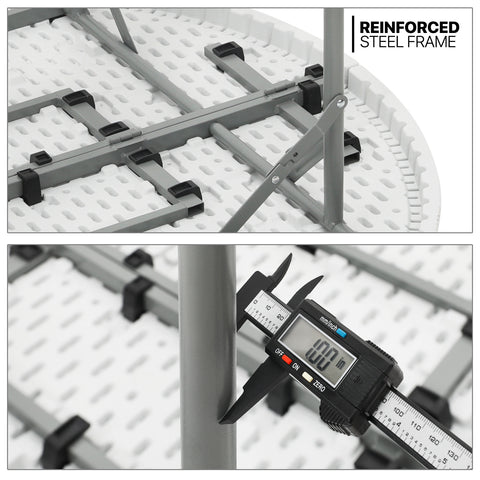 In addition, the steel frame legs provide the support needed to have our plastic folding tables stand up to heavy static loads. It is a great compact table for camping, picnics, caravanning, and for use where space is an issue.