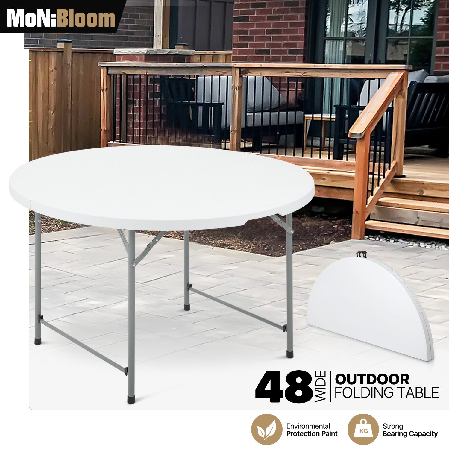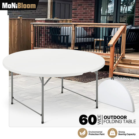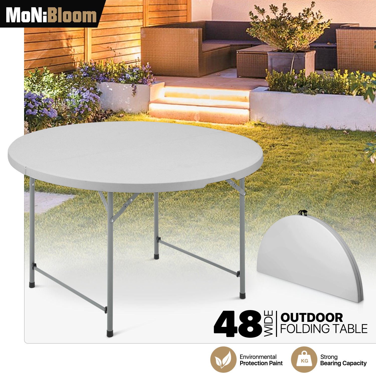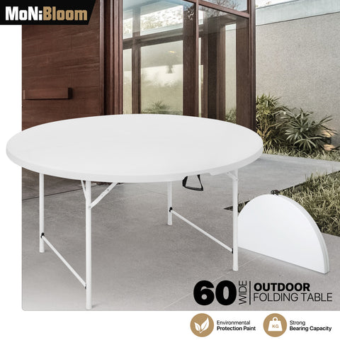 MoNiBloom folding plastic table is a clean-looking, versatile piece perfect for use indoors or outdoors. It folds in half with a carry handle, so you can easily take it out and about with you when you're camping or enjoying a day out in the countryside.