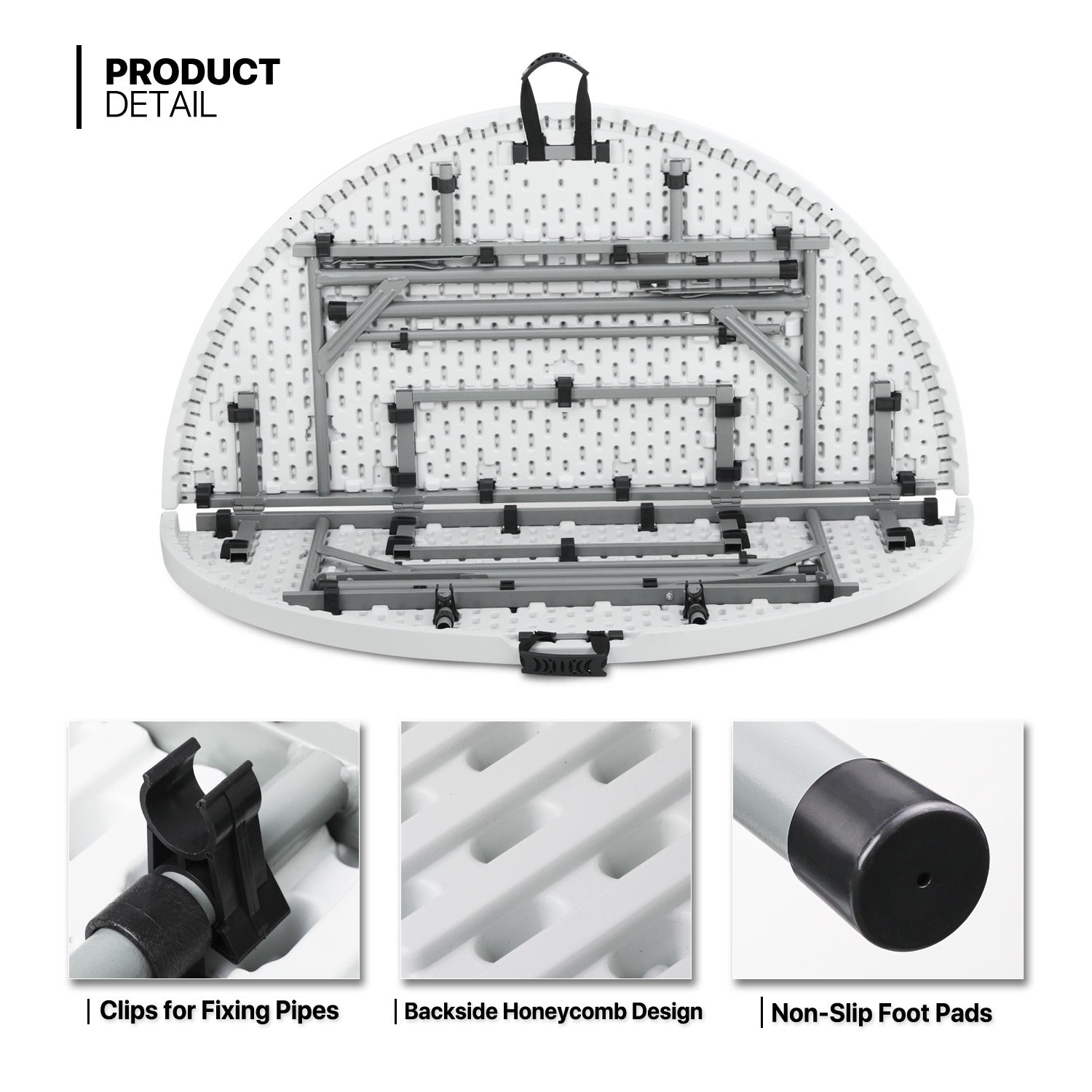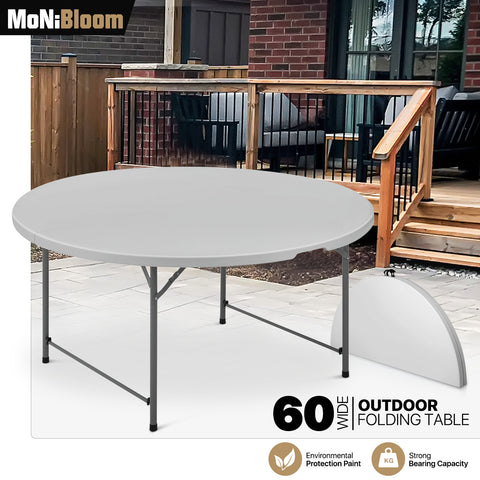 Folding Portable Round Plastic Table - Length 48"/54"/60"/66"