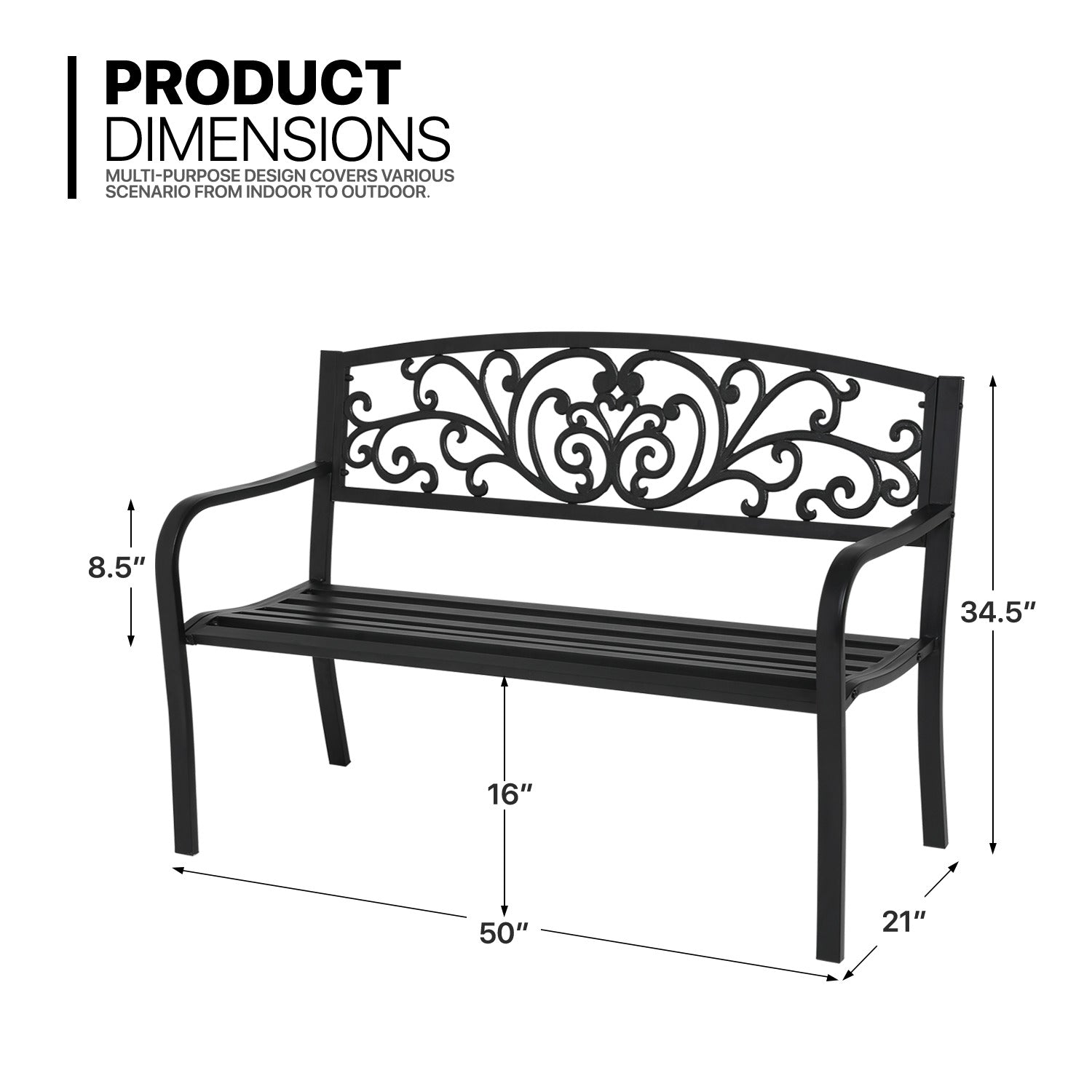 - Made of Cast Iron - This garden bench is made of durable cast iron, and the surface is crafted of multiple anti-rust powder coated treatments which is rust-resistant even in outside use.