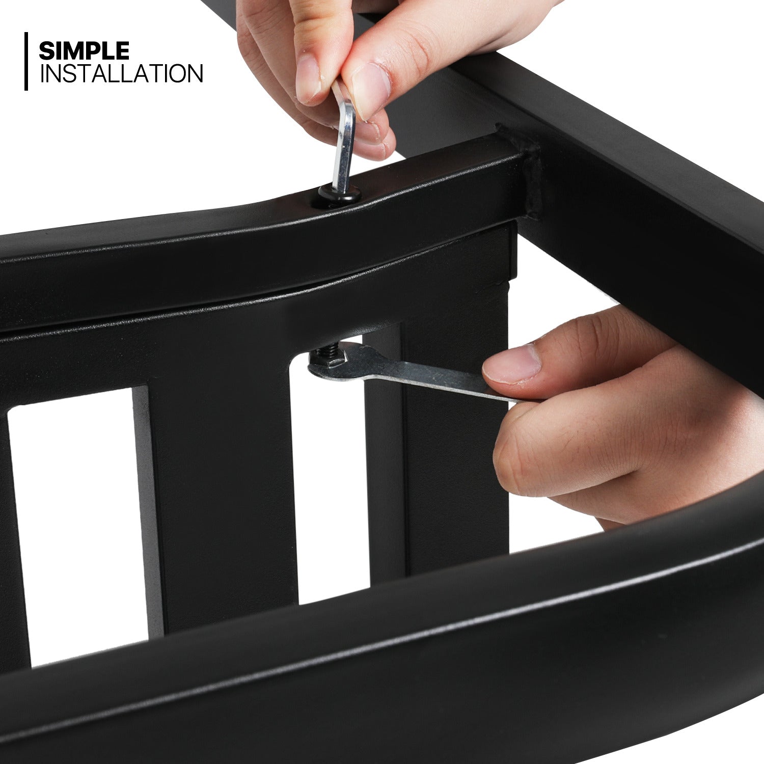 The lively and exquisite grid embellishments of the garden bench are distributed on backrest fashionable plastic backrest and make whole Metal Bench look beautiful. Not only does the Yard Bench offer comfortable sitting experience but also serve as a good decorative ornament. And the garden bench size perfect for two adults.