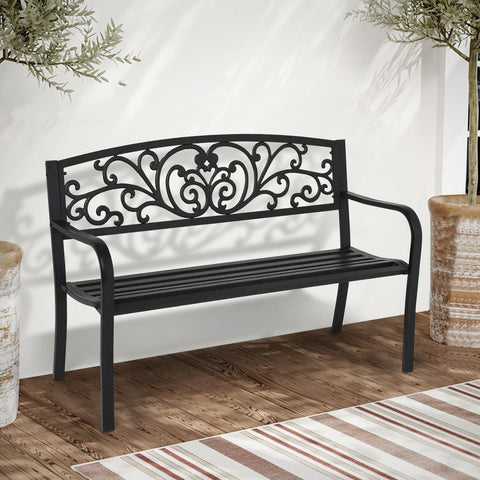 - Retro Floral Pattern - Crafted with a flower-shaped pattern that resembles a spindrift, the simple but thoughtfully designed appearance makes this bench suitable for any patio setting.