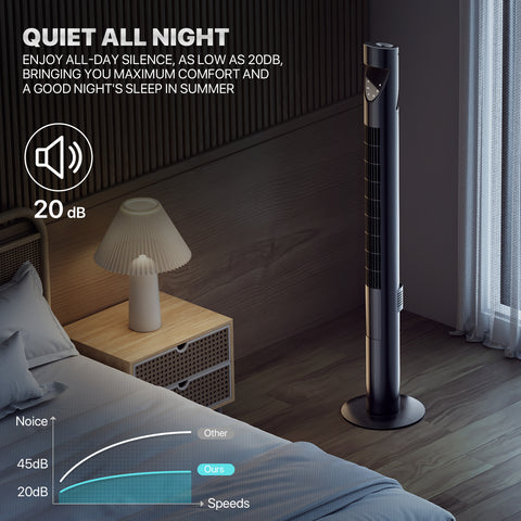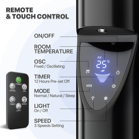 47" Tower fan 3 Speed - Room Temperature Display - Touch Screen Control - LED Down Light