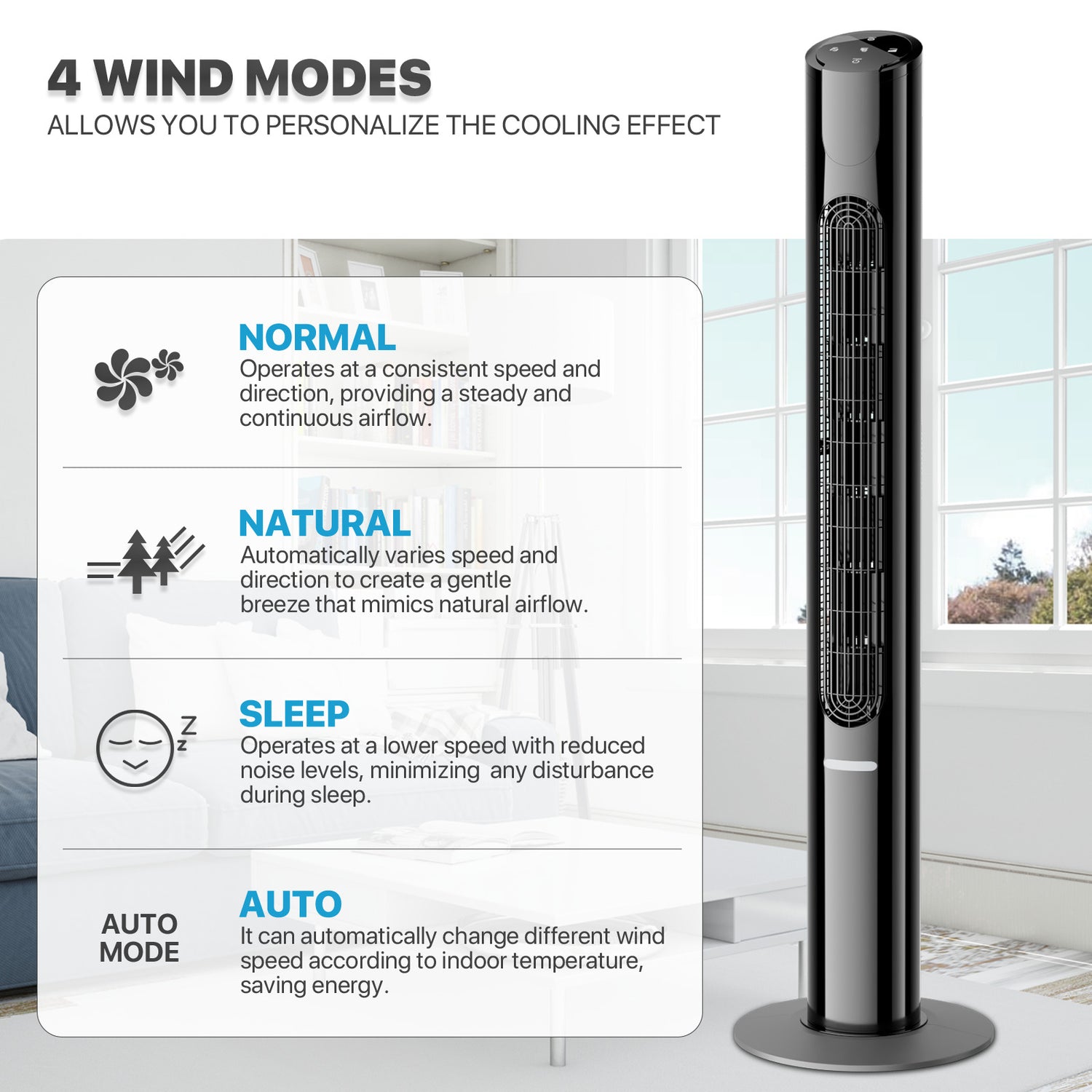 Wind Modes: Normal, Nature, Sleep, ECO